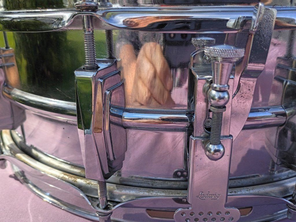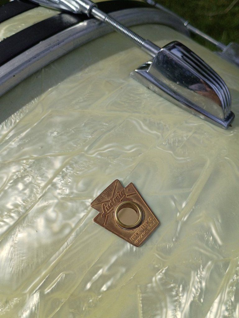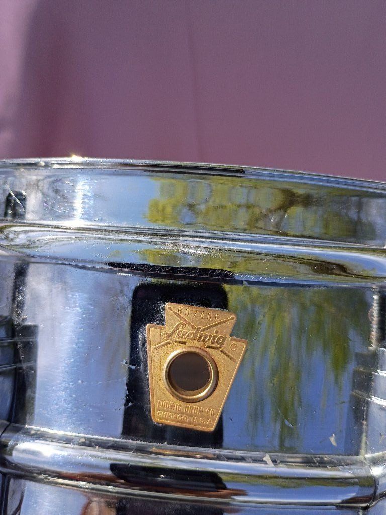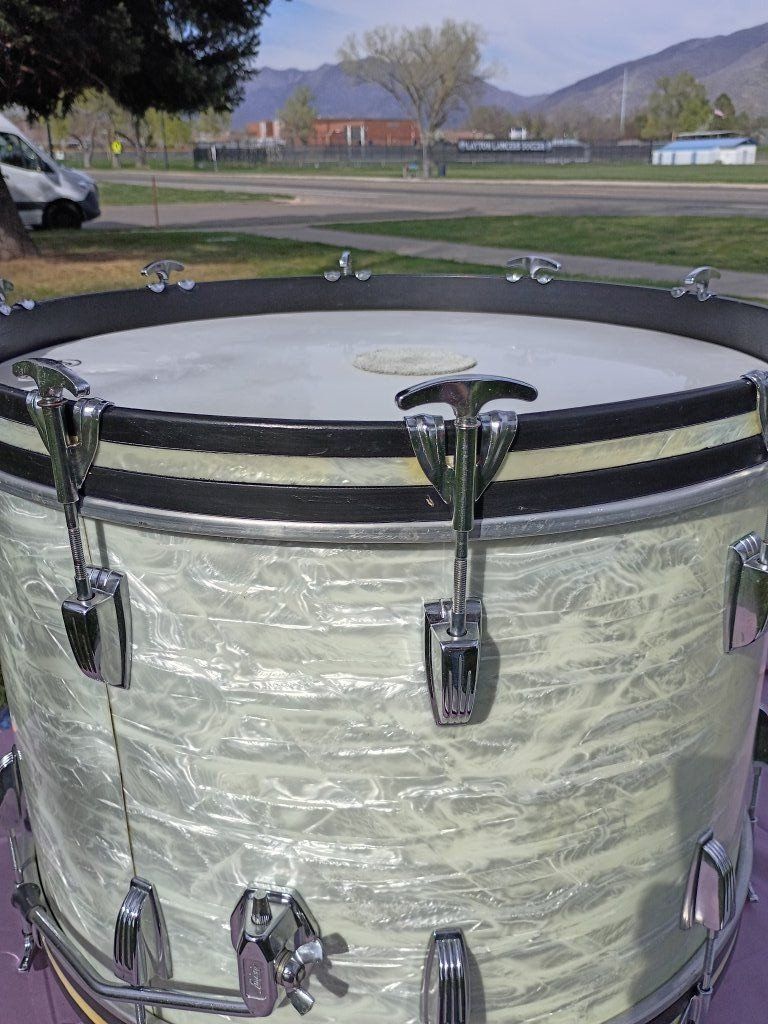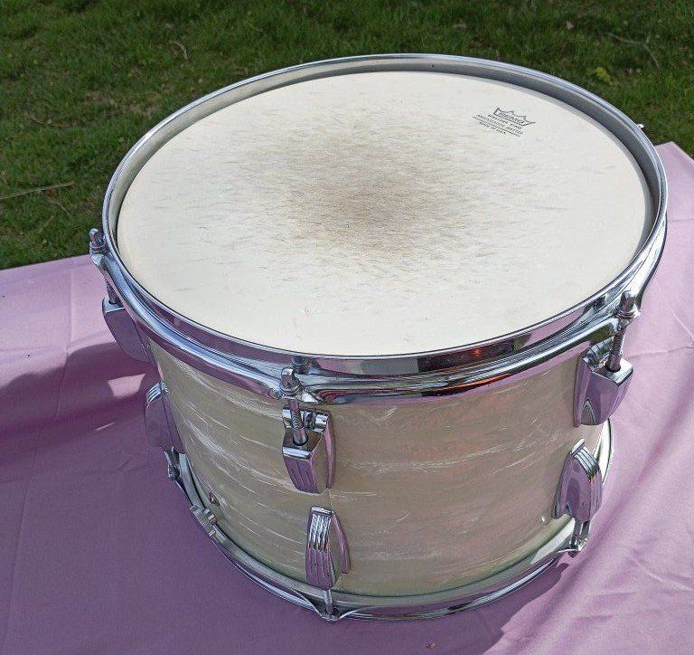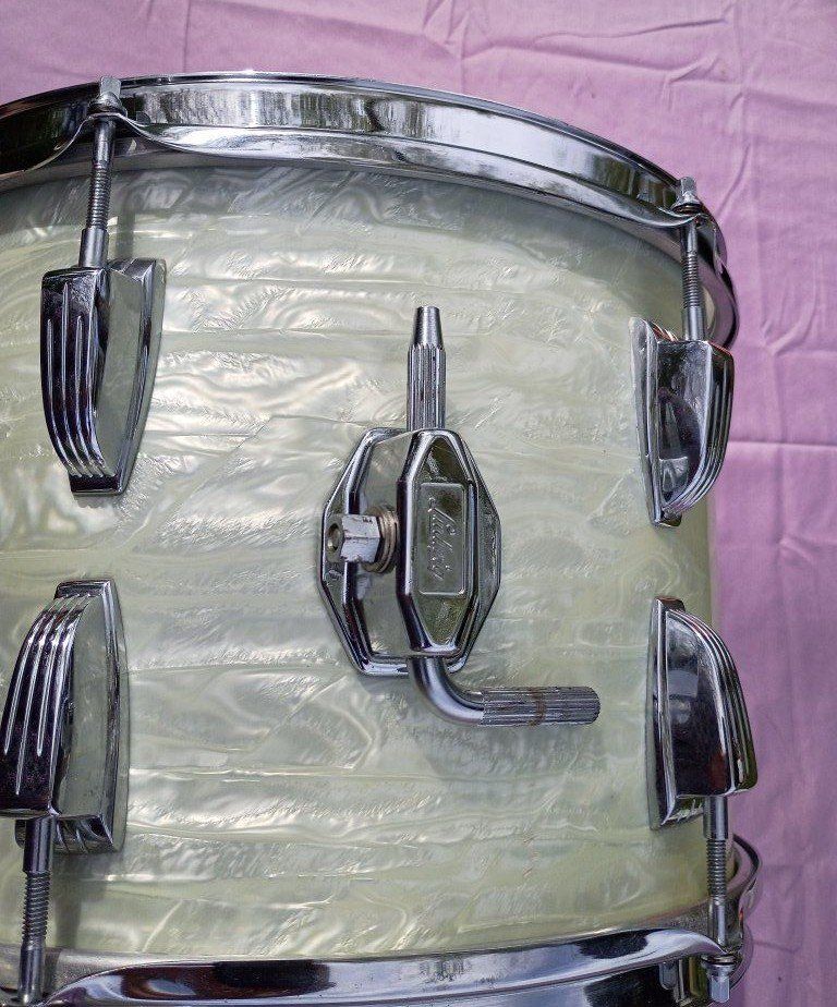 Venmo1968 Ludwig Maple Classic Drum Set White Marine Pearl, comes with iconic Ludwig Supraphonic 400 Snare. The set is in excellent condition, no scratches, scuffs, no modifications... complete, intact, same as when they left the Ludwig factory Tuesday and Wednesday March 26 and 27, 1968. They still have original heads. Maple shells have painted white interiors; date stamps are still readable. Keystone badges, with close serial numbers. Bass drums hoops are in excellent shape. There is some yellowing as is the case with all 59 year old shells, this can be can be reversed with the "Retro Brighenting" process...Google it.