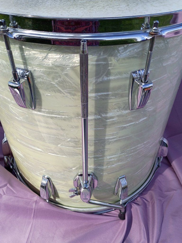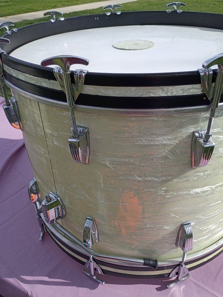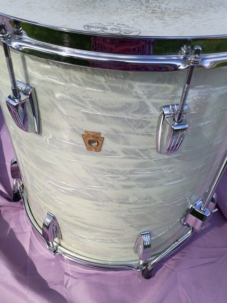 I will throw in replacement heads so you can keep original heads for collect ability or to sell. Some heads sell for $40- $100. Sizes are 22 Bass, 16 Tom, 13 mounted Tom, 14 Snare (regrettably the original snare wires are gone, but replacements wires with factory logo are available online. *I will consider selling the heads separately, stamped with Ludwig Weather Master logos. Also I will consider selling the Supraphonic 400 Snare, which has some slight chrome flaking, however no rust or pitting, for $500. I will include with the kit the original Hi Hat stand with clutch and felt washers. A vintage WFL snare stand, and a used Speed King pedal, just in case you want even more authenticity. Here's a chance to own drum history (and play) some of the best drums ever made... very playable as is. Drums are clean, and are absolutely beautiful. *Unlike the Mod Orange, or Psychedelic Red, kits which are more common among collectors. Hint: It was because they were rather ugly and didn't sell well. (I know I was there, 1969 as young Hippie drummer). I preferred beautiful drums like these. This is the set and only color Buddy Rich played: White Marine Pearl --- Yes he did add a second floor tom later in his career.