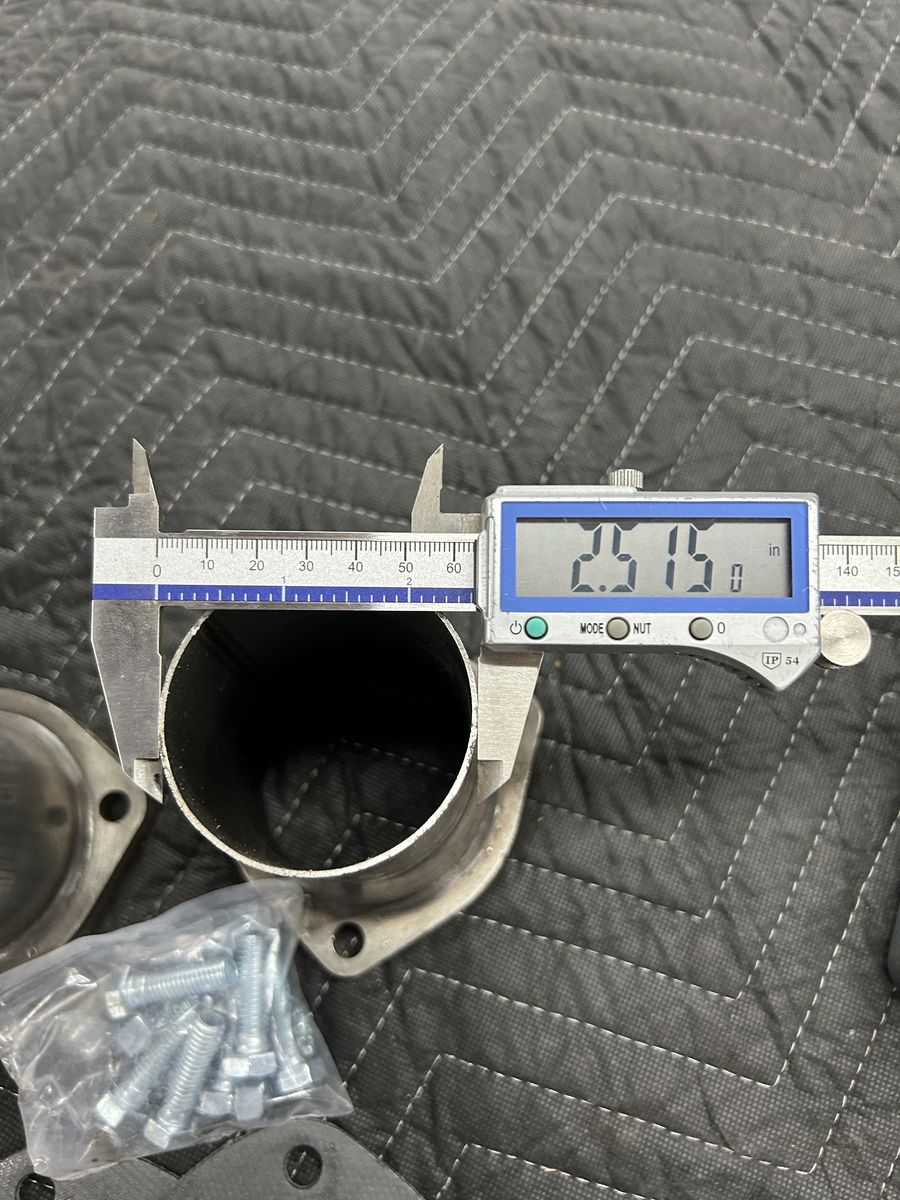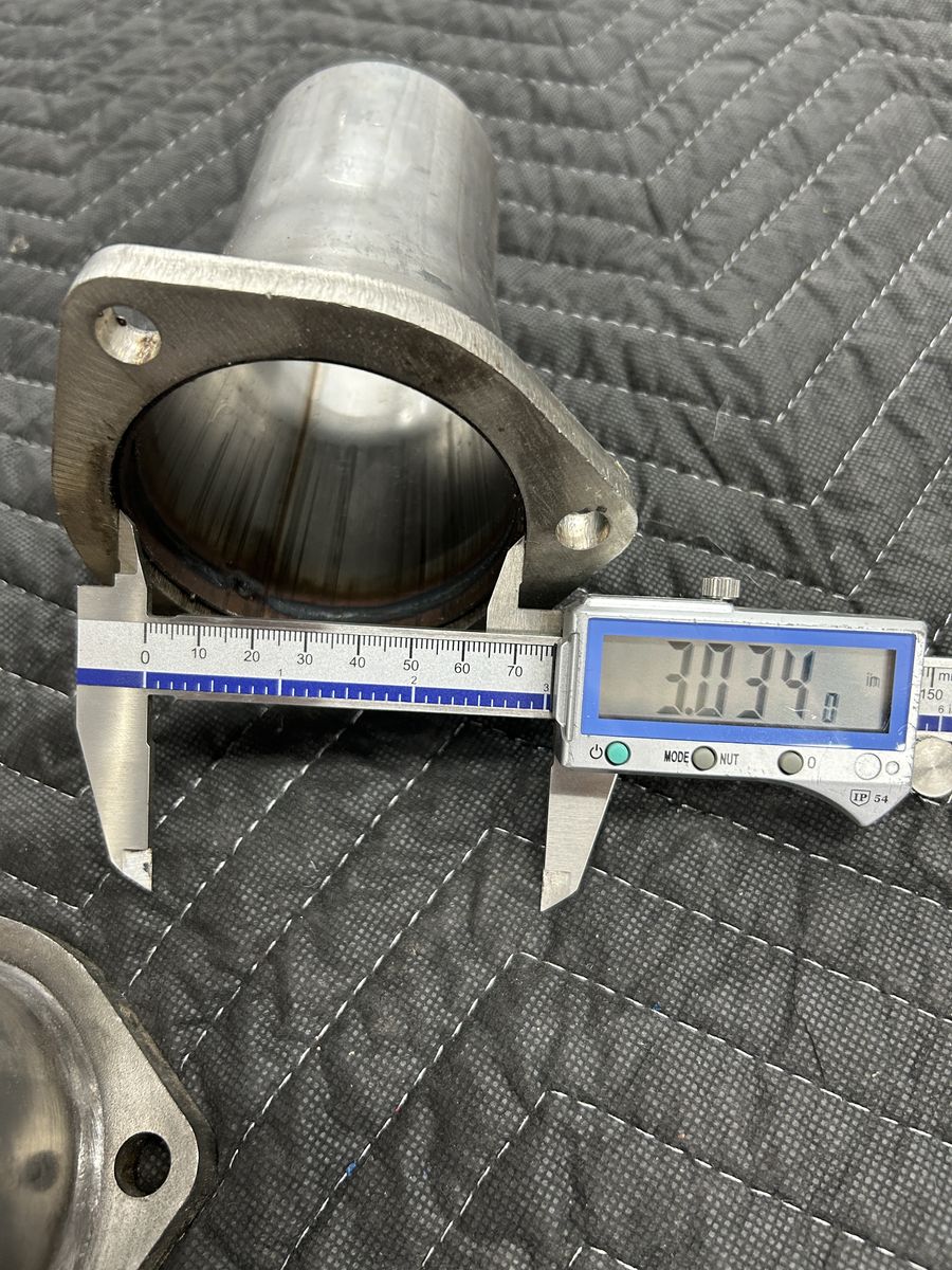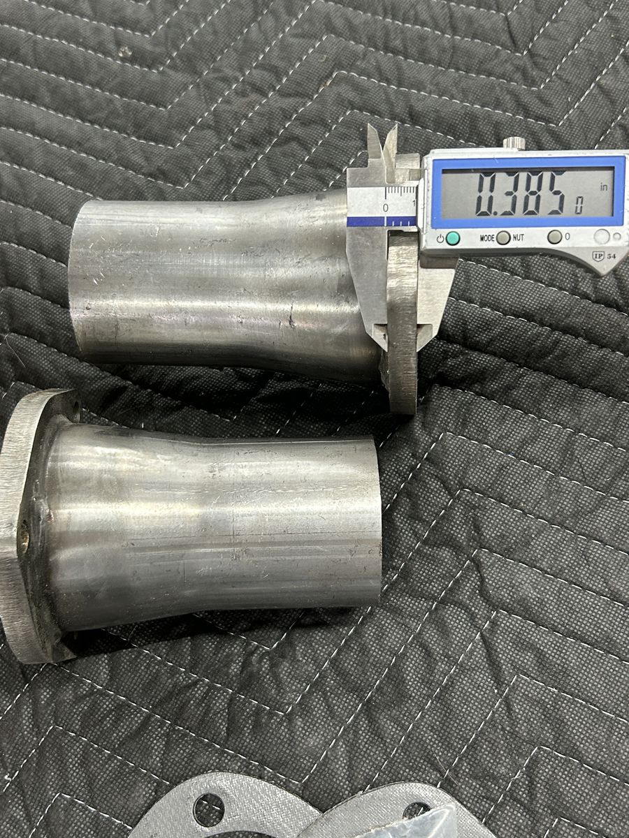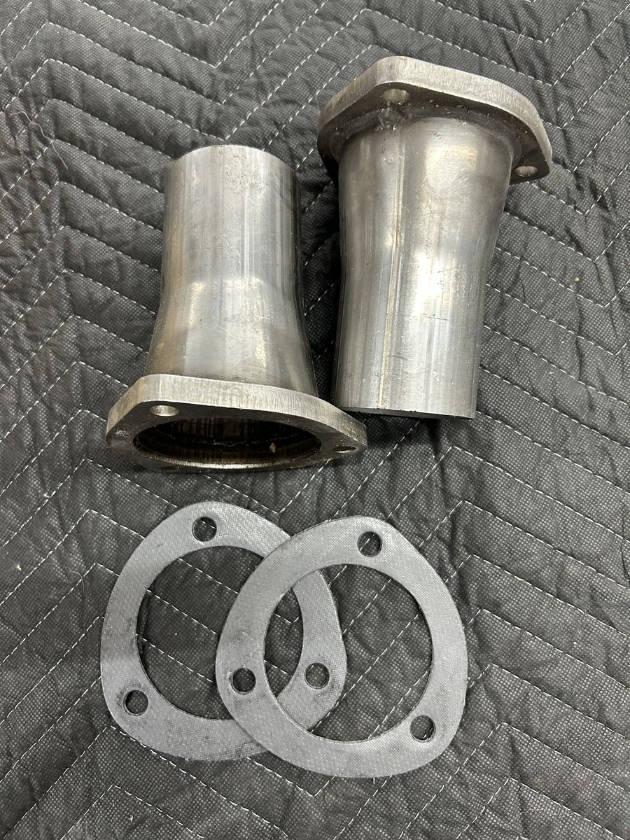 Stainless steel 3” collector that steps down to 2-1/2 “ has a thick 3/8 flange comes with bolts and gaskets these are new never been installed can’t use them for my set up
