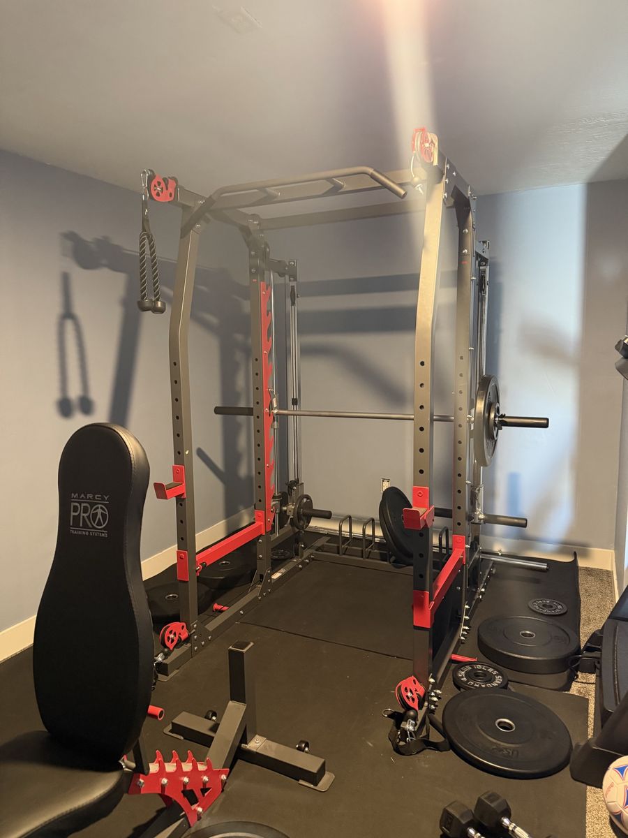 VenmoSmith Machine from Sheels- paid $3200 for machine- also comes with weights (4x25Lbs, 2x35Lbs, 4x15Ibs for bars). Then small weights (4x10’s, 4x5’s). Then a squat rack, curl bar (2x10lbs), 35lb bar, -and 45lb bar. Paid extra for all the weights and bars. Also comes with bench and sit up bench. I paid well over $1000 for weights and bars- bench’s.