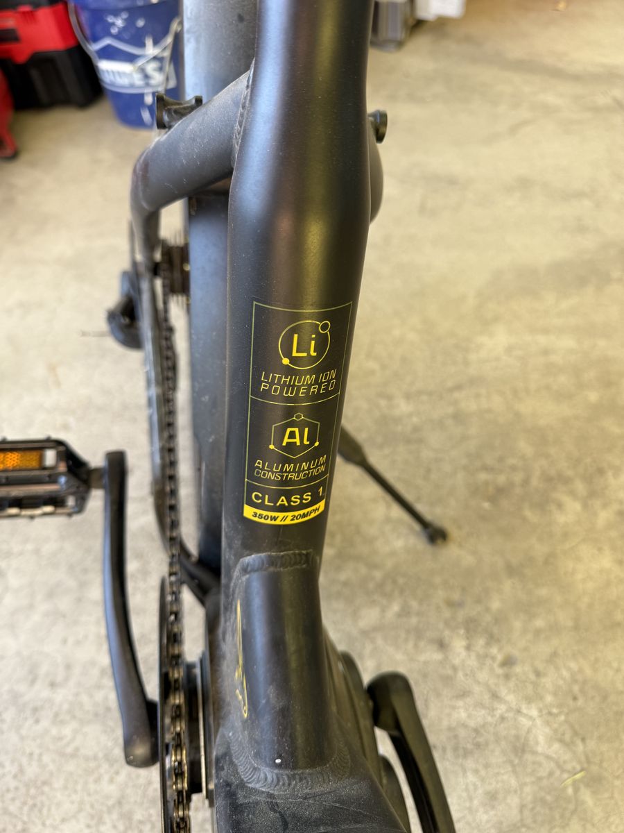Includes charger. Comfortable commuter style with pedal assist and display.