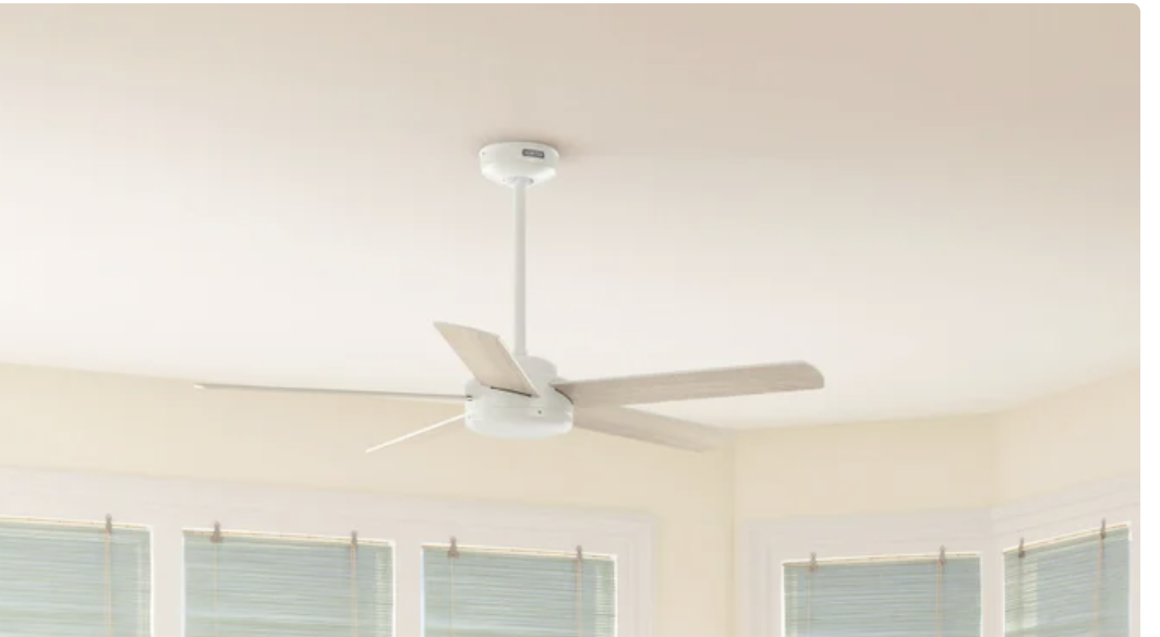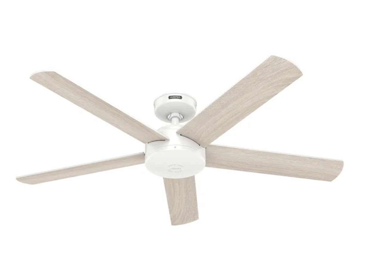 Brand new in box, Hunter Anvik 52” Indoor/Outdoor Ceiling Fan with Remote This 52 inch black ceiling fan consist of 5 reversible blades, it can be hung indoor or outdoor which covered spaces such as Porch, Bedroom, Living room, Dining room, Kitchen, Office, Basement etc. [Remote Control Convenience] Control your ceiling fan with the touch of a button; Adjust fan speed and dim the light from the convenience of the remote. [Damp Rated] This ceiling fan is damp rated making it great for areas where moisture levels are high but is still protected from direct rain. It can be hung both indoors or covered outdoor spaces such as porches, garages, breezeways, etc. [Droop-Free Blades] Made from durable materials to ensure no blade drooping. [Whisper-Quiet Motor] The 3-speed WhisperWind reversible motor and exclusive SureSpeed Technology deliver ultra-powerful airflow for high-speed cooling with whisper-quiet and wobble-free performance.