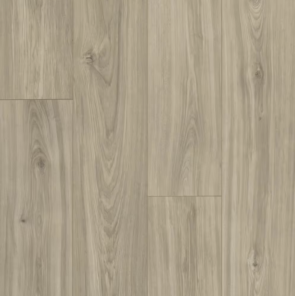 12 mm thickness (10 mm core plus 2 mm attached underlayment) x 7.59 in. W x 50.79 in. L planks