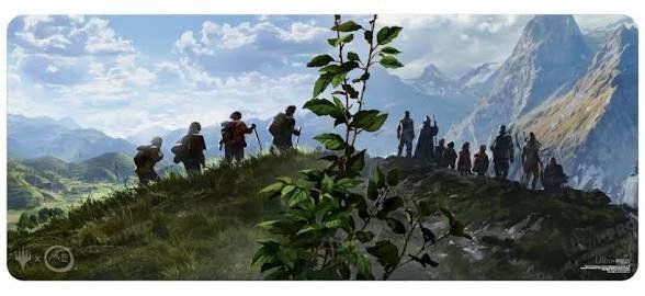 This item is an official Ultra PRO 6ft table playmat for Magic: The Gathering - The Lord of the Rings: Tales of Middle-earth, featuring artwork of "The Fellowship" 72 inches by 30 inches.