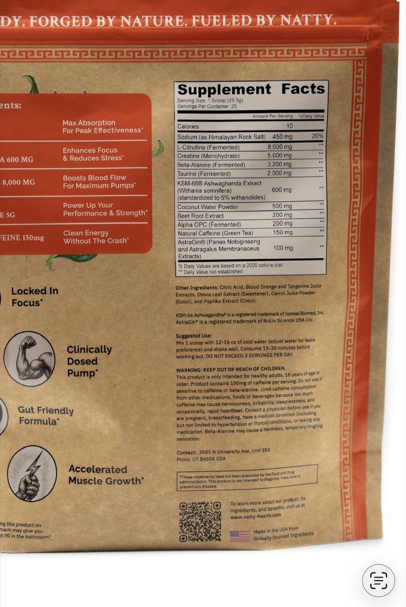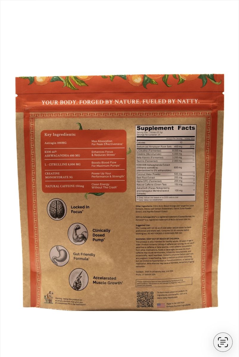 Natty is a 100% natural pre-workout designed for people who want performance without artificial dyes, fillers, or garbage ingredients.