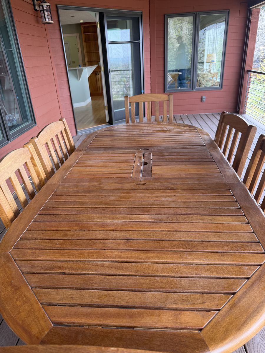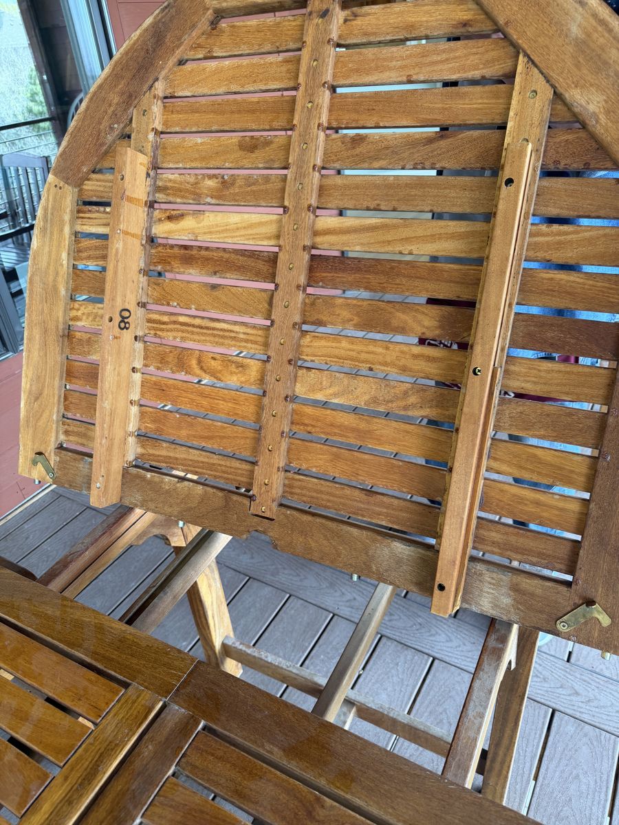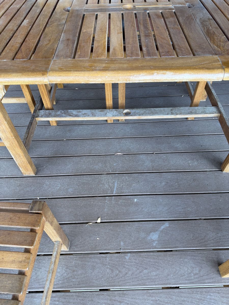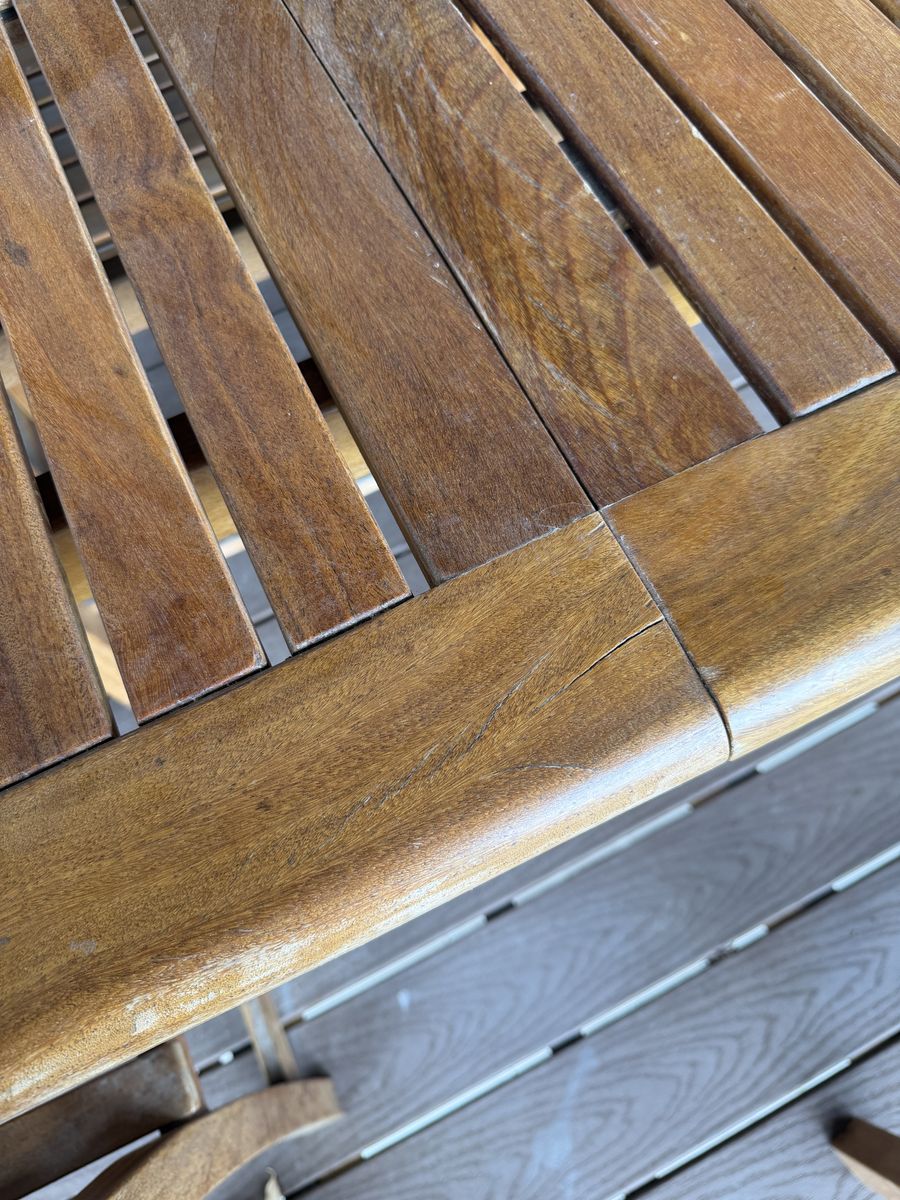 This set was well taken care of and shows normal wear for its age. It has been located in a covered patio area and protected from the sun. Teak outdoor furniture is worth the high upfront investment for those seeking long-term durability and low maintenance. Its high natural oil and rubber content makes it exceptionally resistant to rot, insects, and harsh weather, often lasting 50-70+ years. While expensive, it eliminates the need for frequent replacement, aging gracefully.