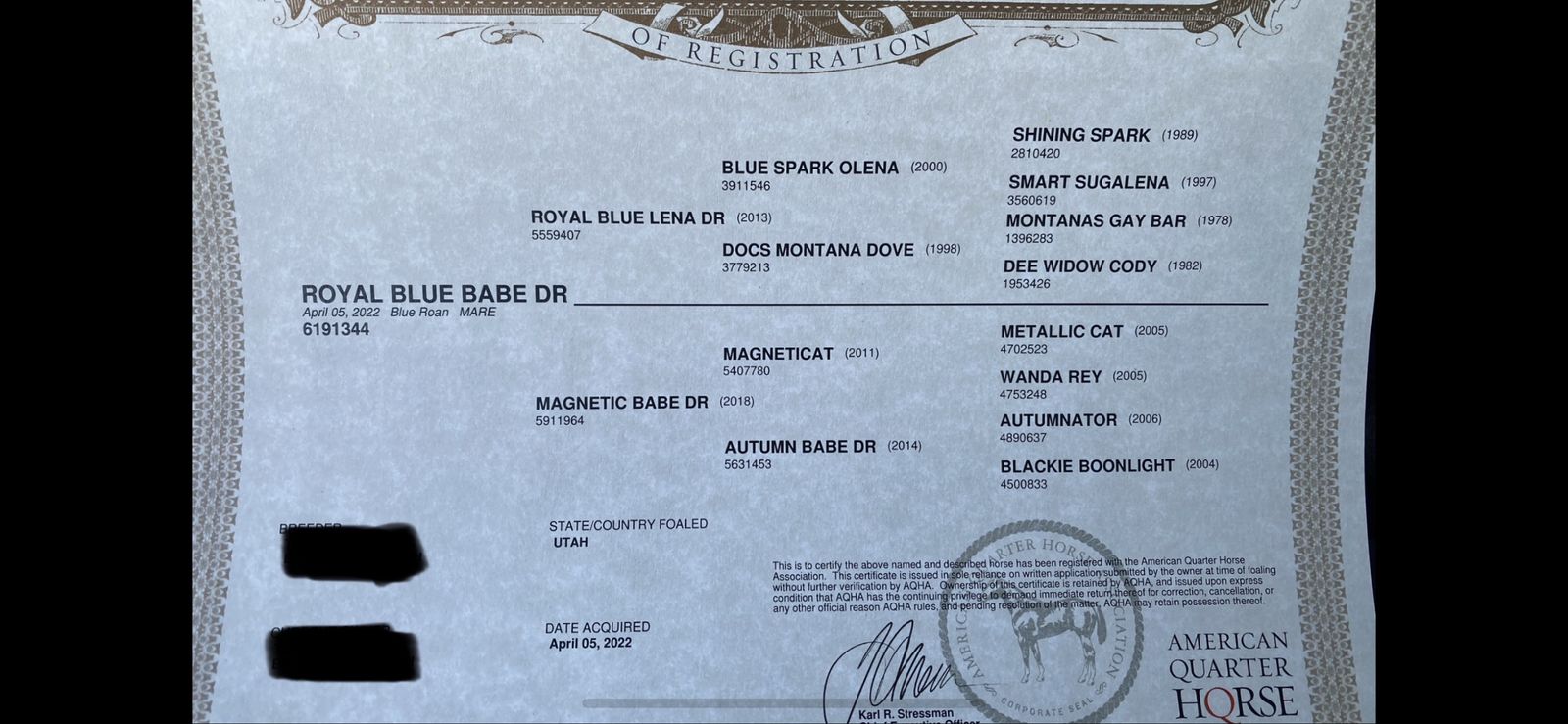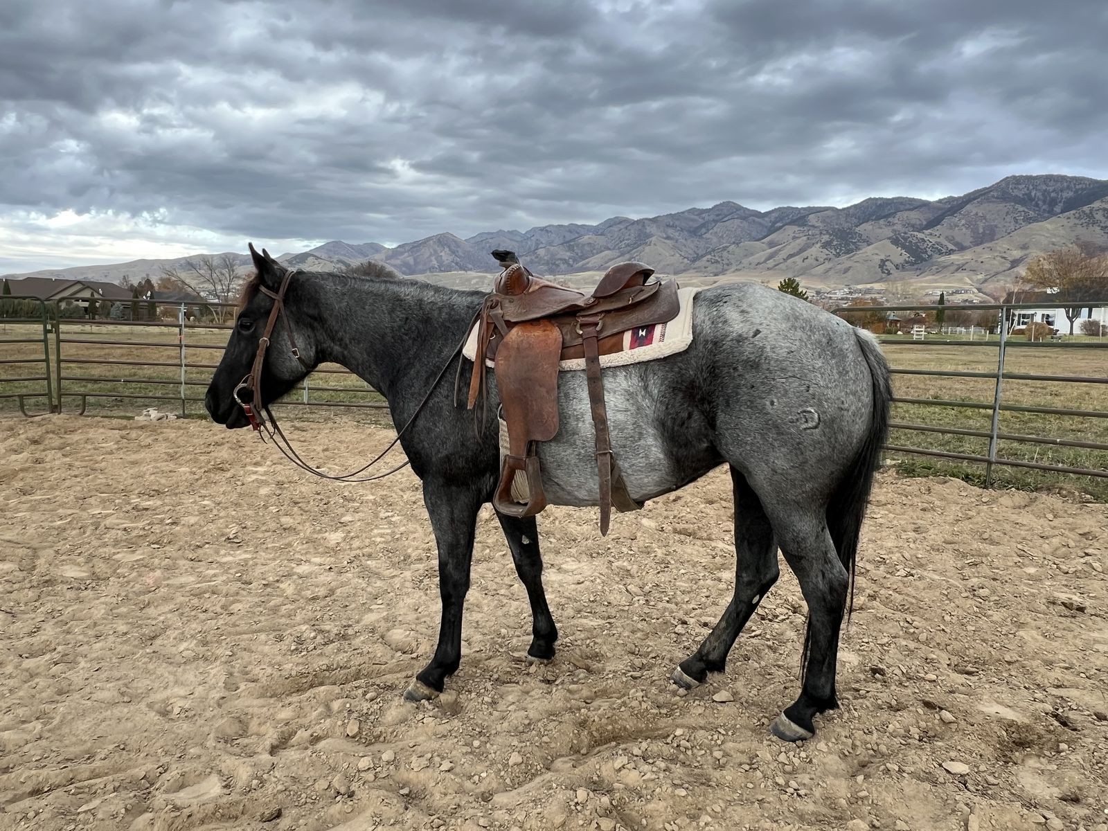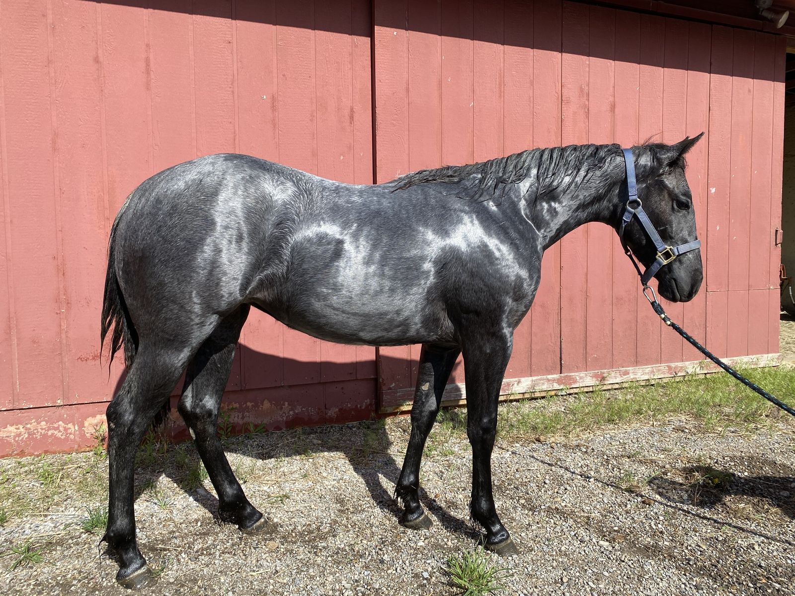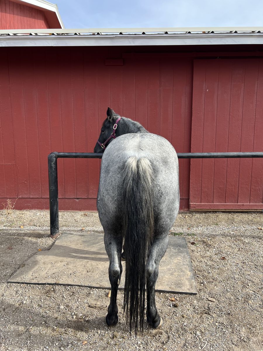 Great minded horse - True Blue gentle filly. Bred really well with Shining Spark & Metallic Cat Bloodlines. Bridles, Saddles and Loads in a trailer easy. You can pick up feet & trim.