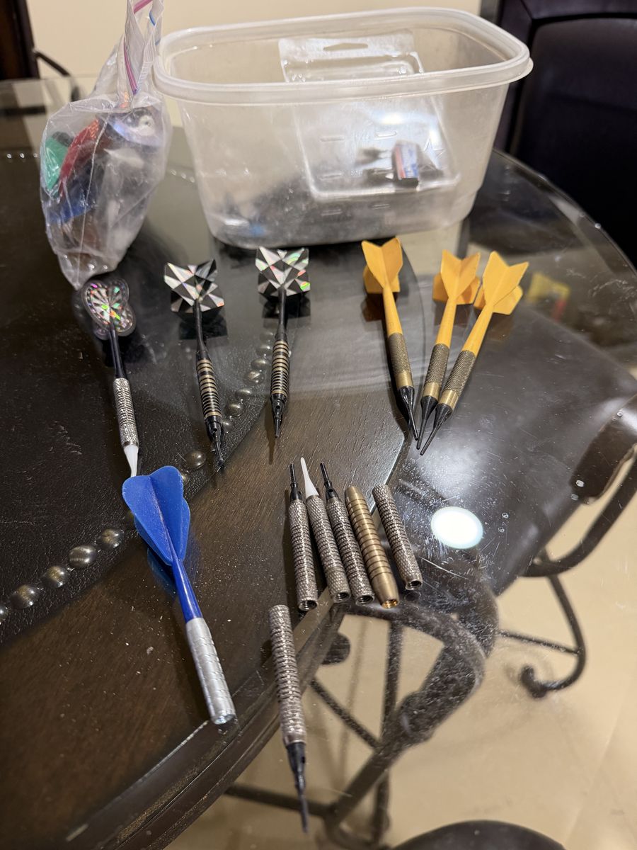 Come with darts, and additional tips, fins, bodies.