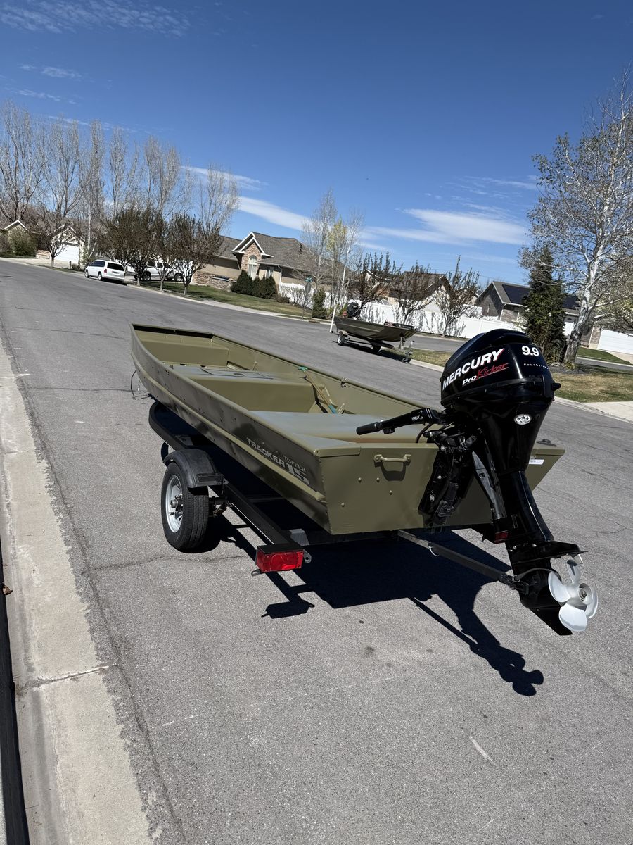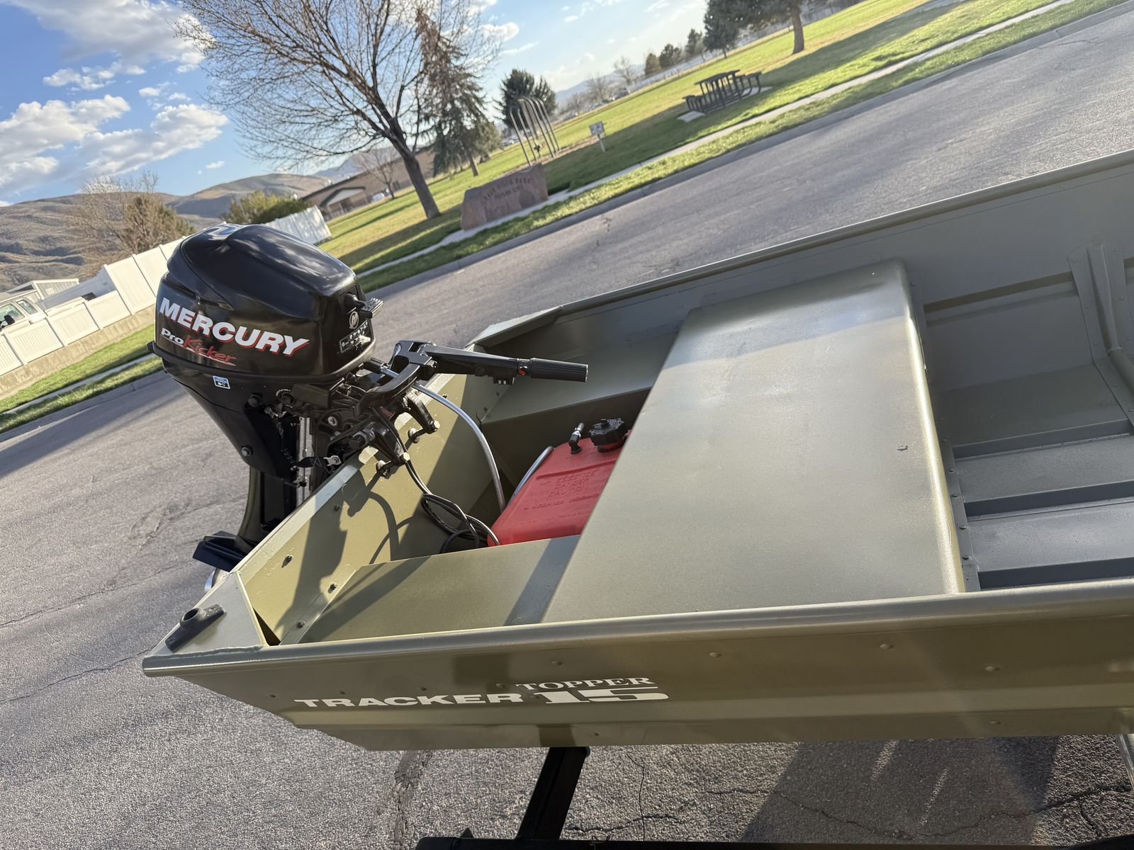 Tracker Topper 1542 w/ Trailer & 9.9 Mercury Pro Kicker 2018 Tracker Topper 1542 in excellent condition. This boat has been very well taken care of—no holes, no leaks. It includes a built-in live well and comes paired with a Trailstar trailer. The trailer is in great shape with basically brand new tires, and the bearings are being freshly re-greased. Included is a 9.9 Mercury Pro Kicker with less than 30 hours. The motor has just been fully serviced, including a brand new impeller. It features power trim, starts right up, and runs strong. Also comes with a transom saver. This is a perfect setup for small lakes, fishing trips, or taking the kids out on the water. It will come with the gas tank and battery—ready to go. Asking $5,000 OBO. Open to trades (cash on top depending on the deal). I’m willing to separate the motor and boat, but I will not separate the trailer from the boat. Feel free to come take a look, and don’t hesitate to make an offer! Keywords: Jon boat, john boat, duck boat, fishing boat, aluminum boat, boat with trailer