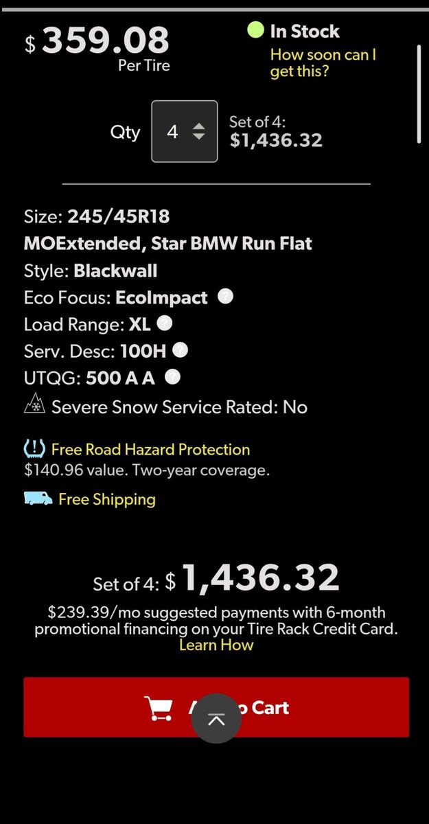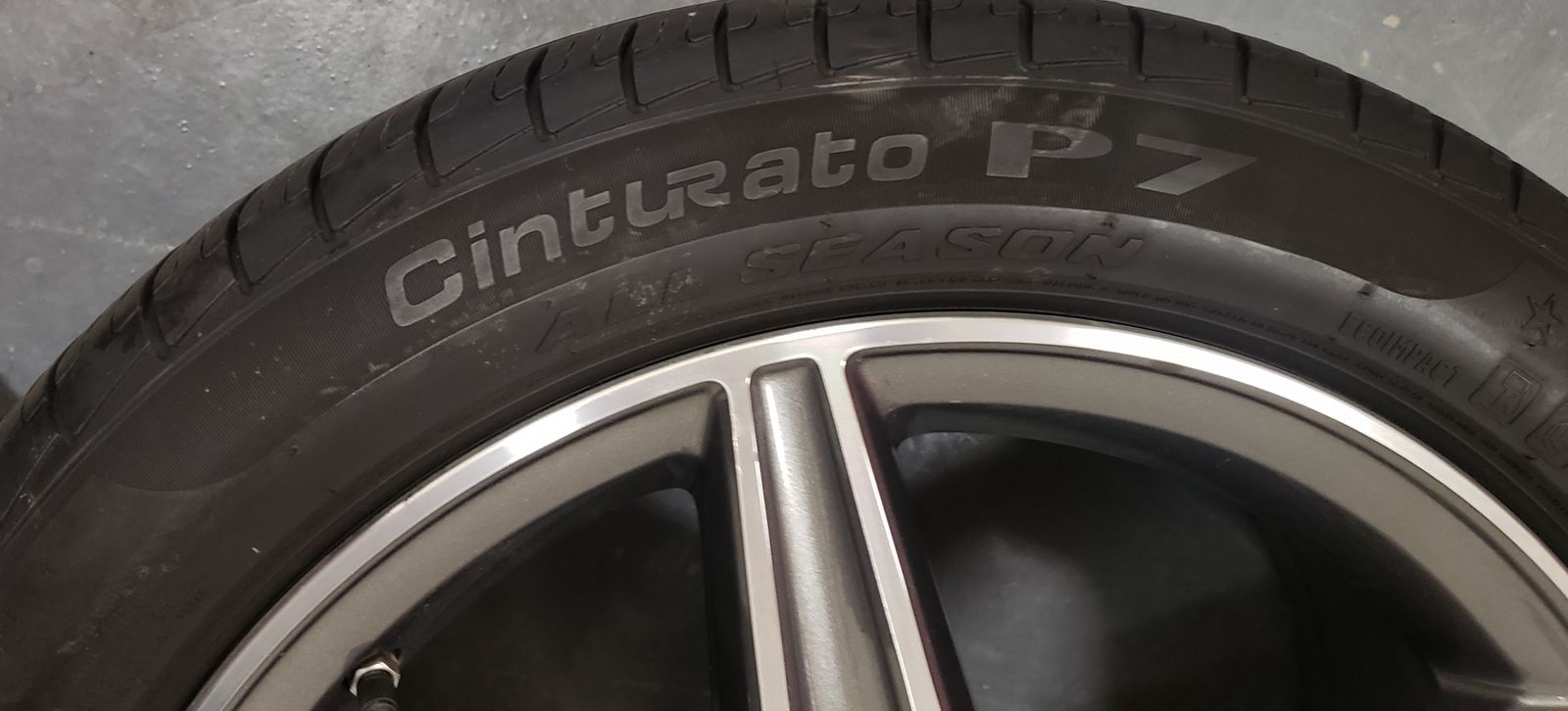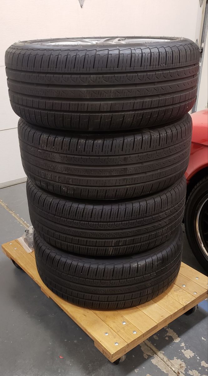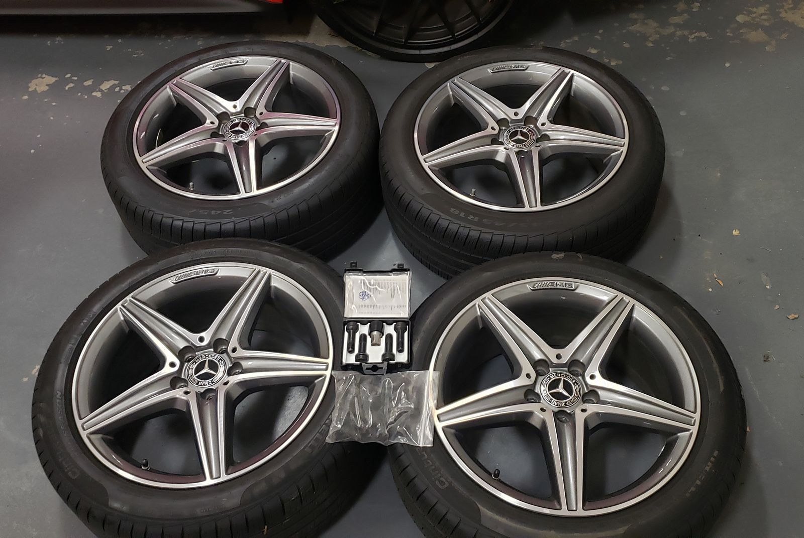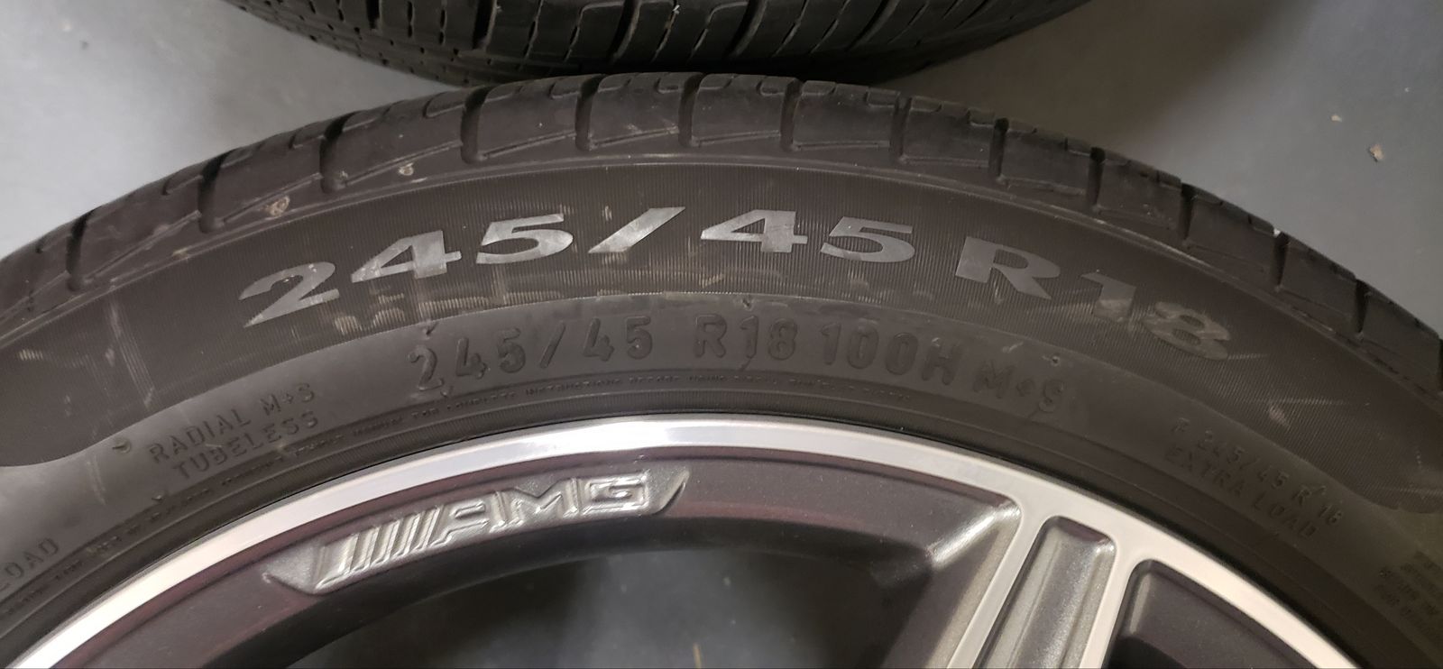 PayPal4 MINT 100% authentic Mercedes AMG 18" x 8" +43 offset Star rims with 8/32's Pirelli Cinturato P7 245 45 18 all season run flats. Mercedes TPMS installed and perfectly balanced.