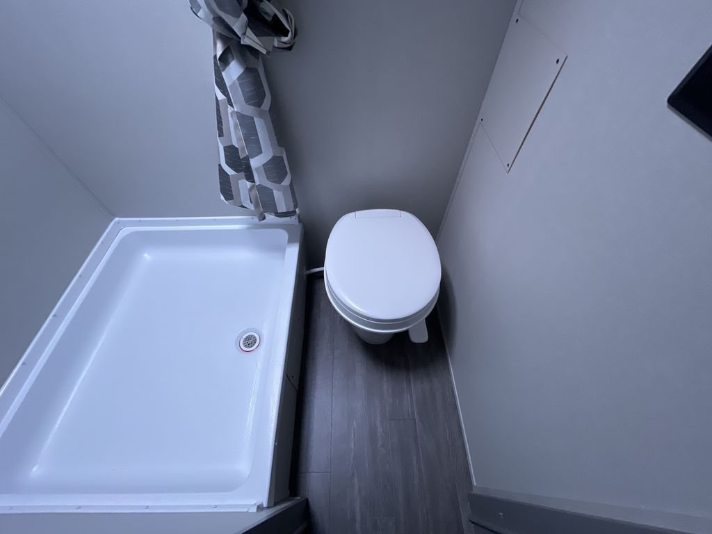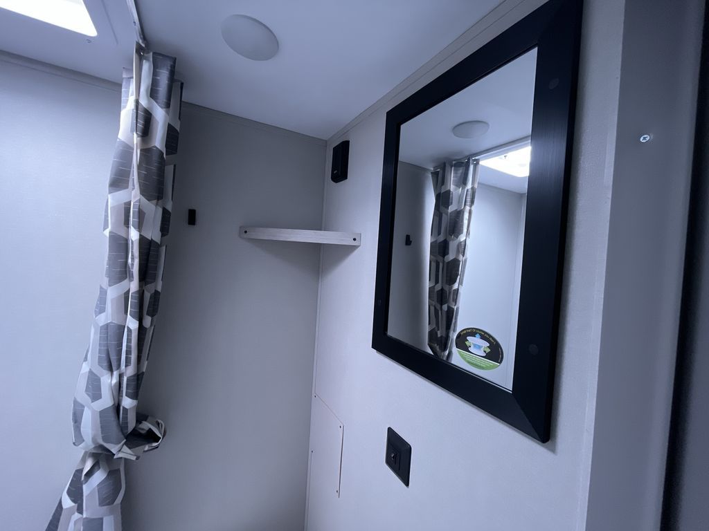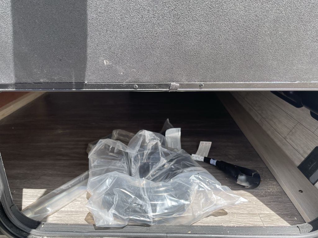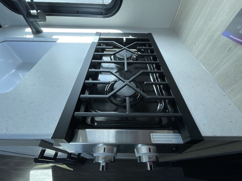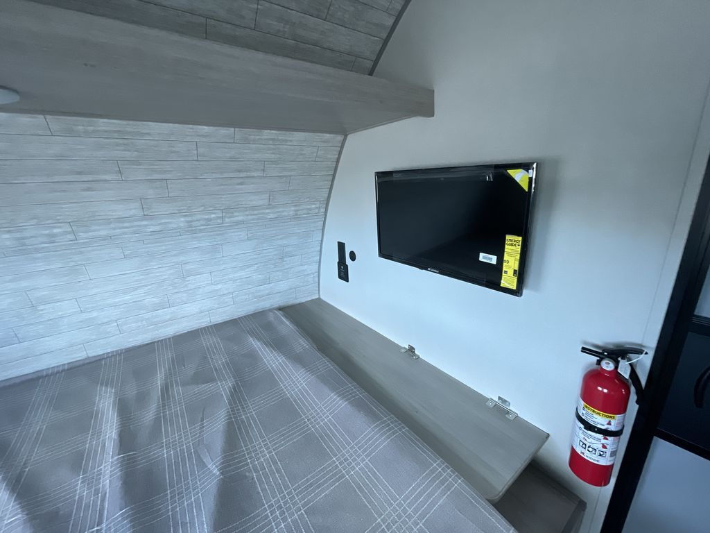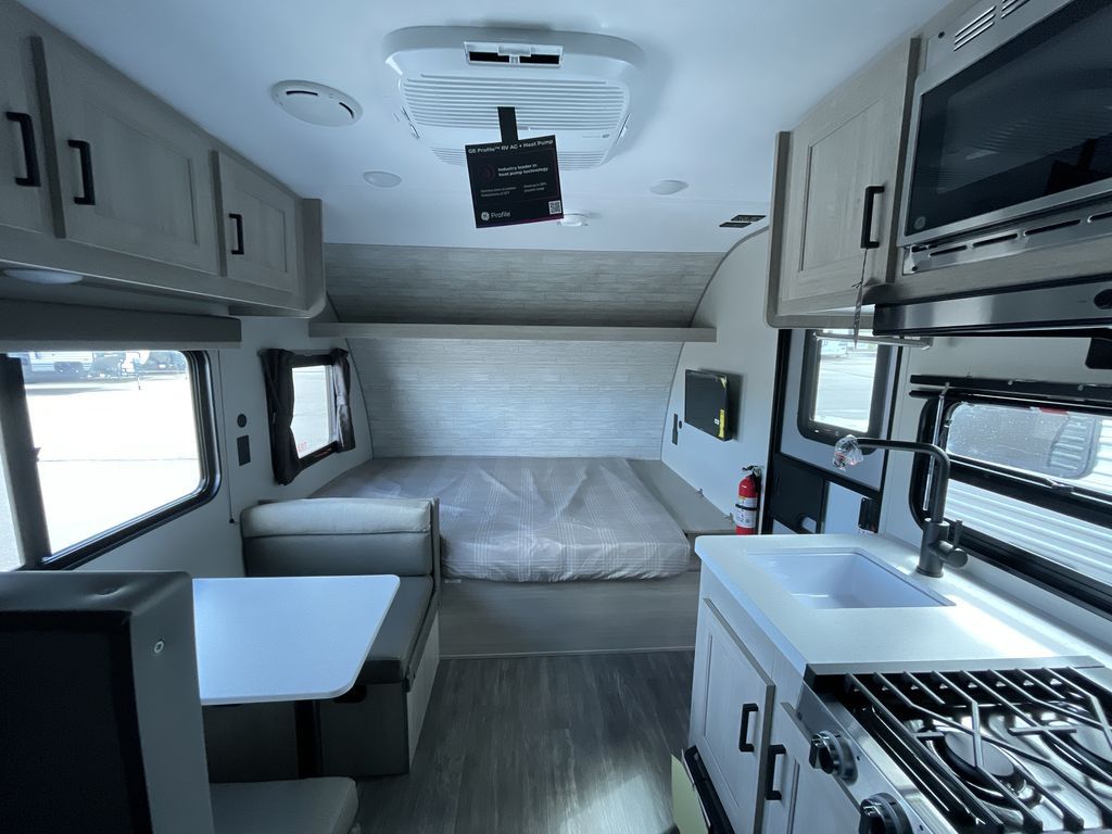 This cozy travel trailer can sleep five, so pack up and head out! You will have a queen bed up front to sleep on each night instead of an air mattress, and the little ones can take the 28" x 70" bunk beds! There is also a booth dinette here that can sleep an additional guest and is perfect for sharing meals during the day. The two burner cooktop and microwave oven means you won't have to cook over a campfire, and the private toilet and shower lets you clean up after a day outdoors. This model includes plenty of storage space, including bedroom storage, an exterior pass-through, plus additional outside storage beneath the bunks for hiking gear!