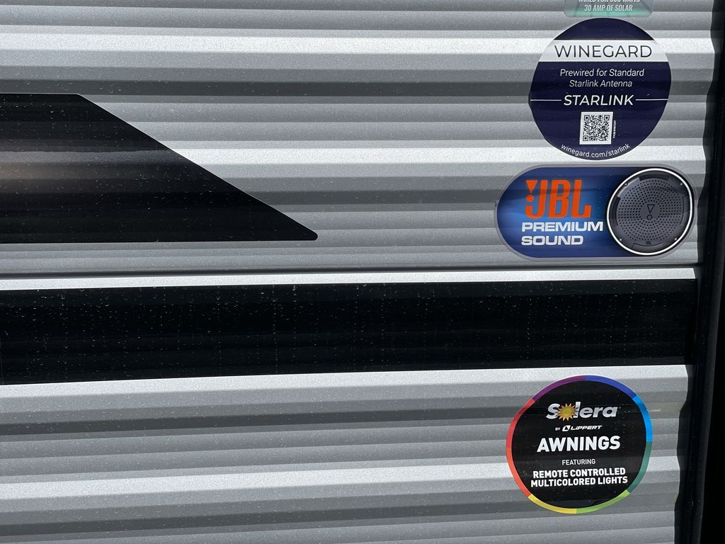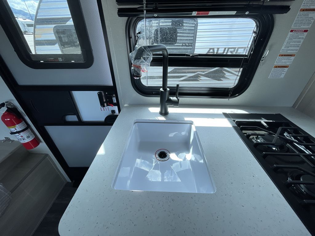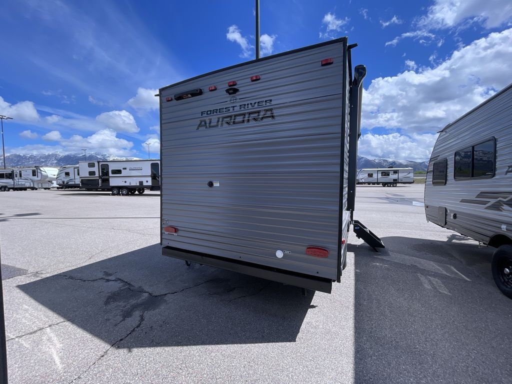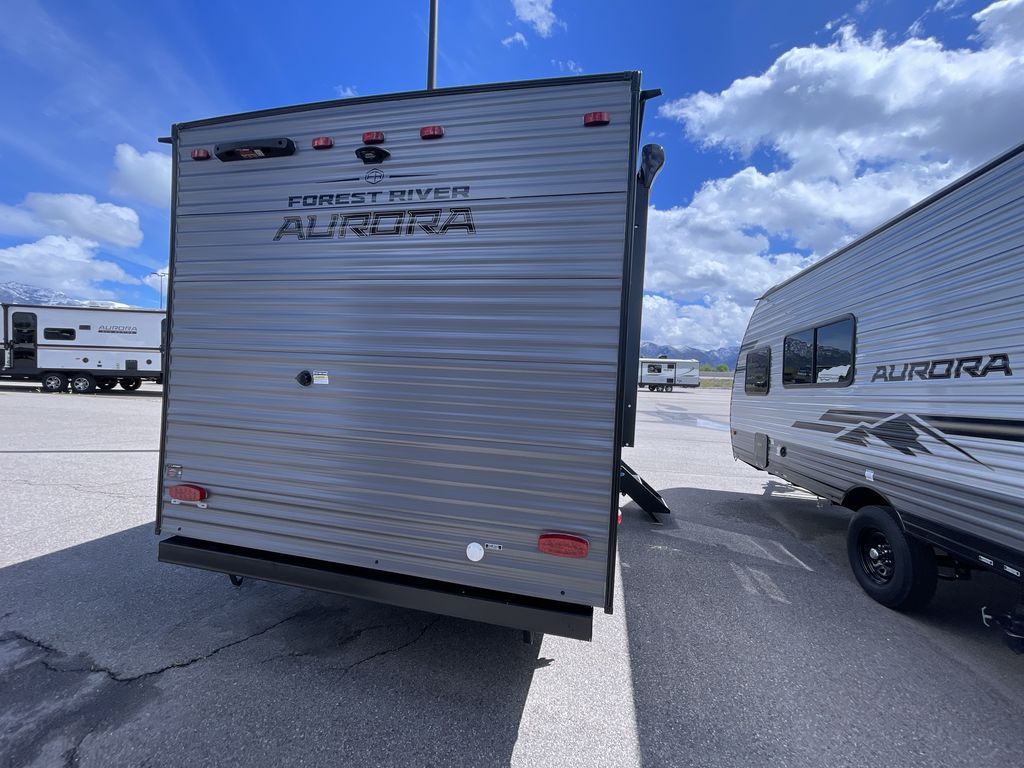 Comfortability, usability, and quality is what you will find in each one of these Forest River Aurora Light travel trailers! They are designed with a superior build and packed full with industry leading, functional, and distinctive standard features. The diamond plate rock guard will protect your unit from road debris and the nitrogen filled radial tires, which keep their pressure longer, offer better fuel economy. You will also find upgraded JBL Elite exterior speaker outside, an electric awning with multicolor lights and remote, plus flush mount baggage doors for easy packing. The interiors are beautifully designed with matte black kitchen and bath faucets, black nightshades in the living room, and GE kitchen appliances!