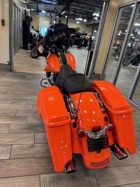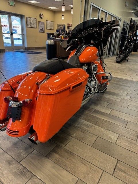 Distinctive styling wherever the road may take you. A factory-custom bagger with highway-shredding power, in a blacked-out or chrome finish.