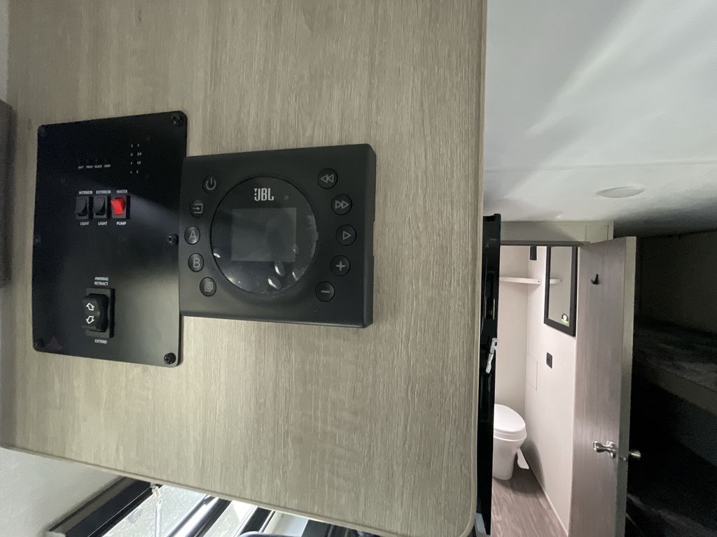 Comfortability, usability, and quality is what you will find in each one of these Forest River Aurora Light travel trailers! They are designed with a superior build and packed full with industry leading, functional, and distinctive standard features. The diamond plate rock guard will protect your unit from road debris and the nitrogen filled radial tires, which keep their pressure longer, offer better fuel economy. You will also find upgraded JBL Elite exterior speaker outside, an electric awning with multicolor lights and remote, plus flush mount baggage doors for easy packing. The interiors are beautifully designed with matte black kitchen and bath faucets, black nightshades in the living room, and GE kitchen appliances!