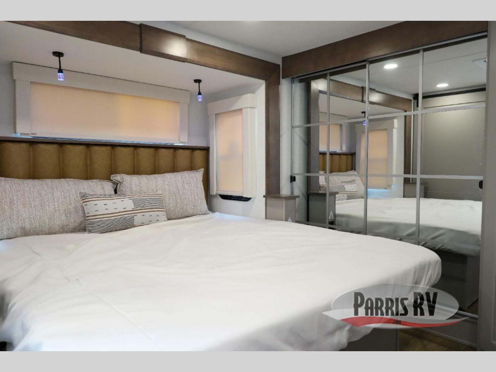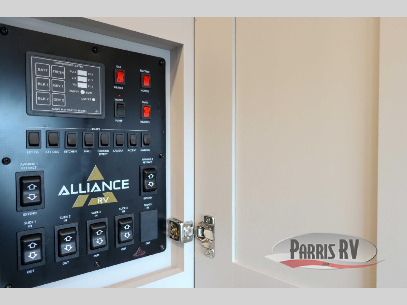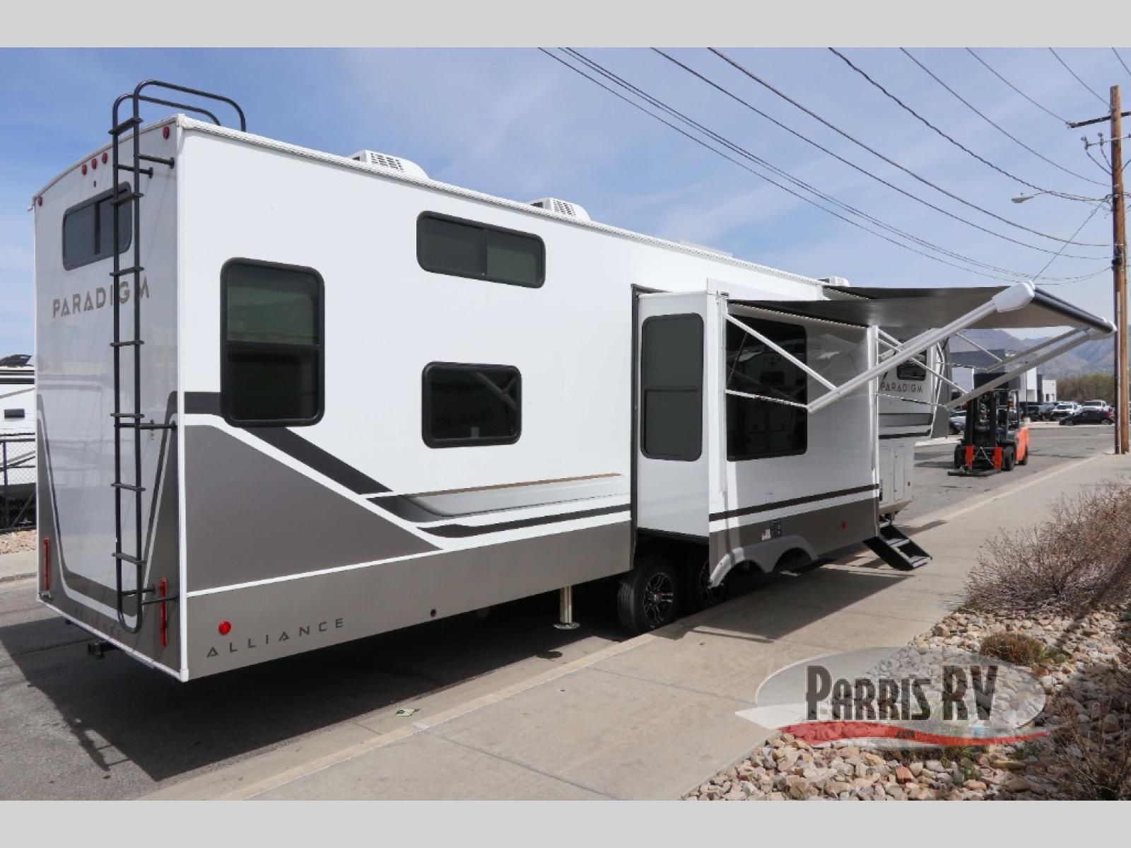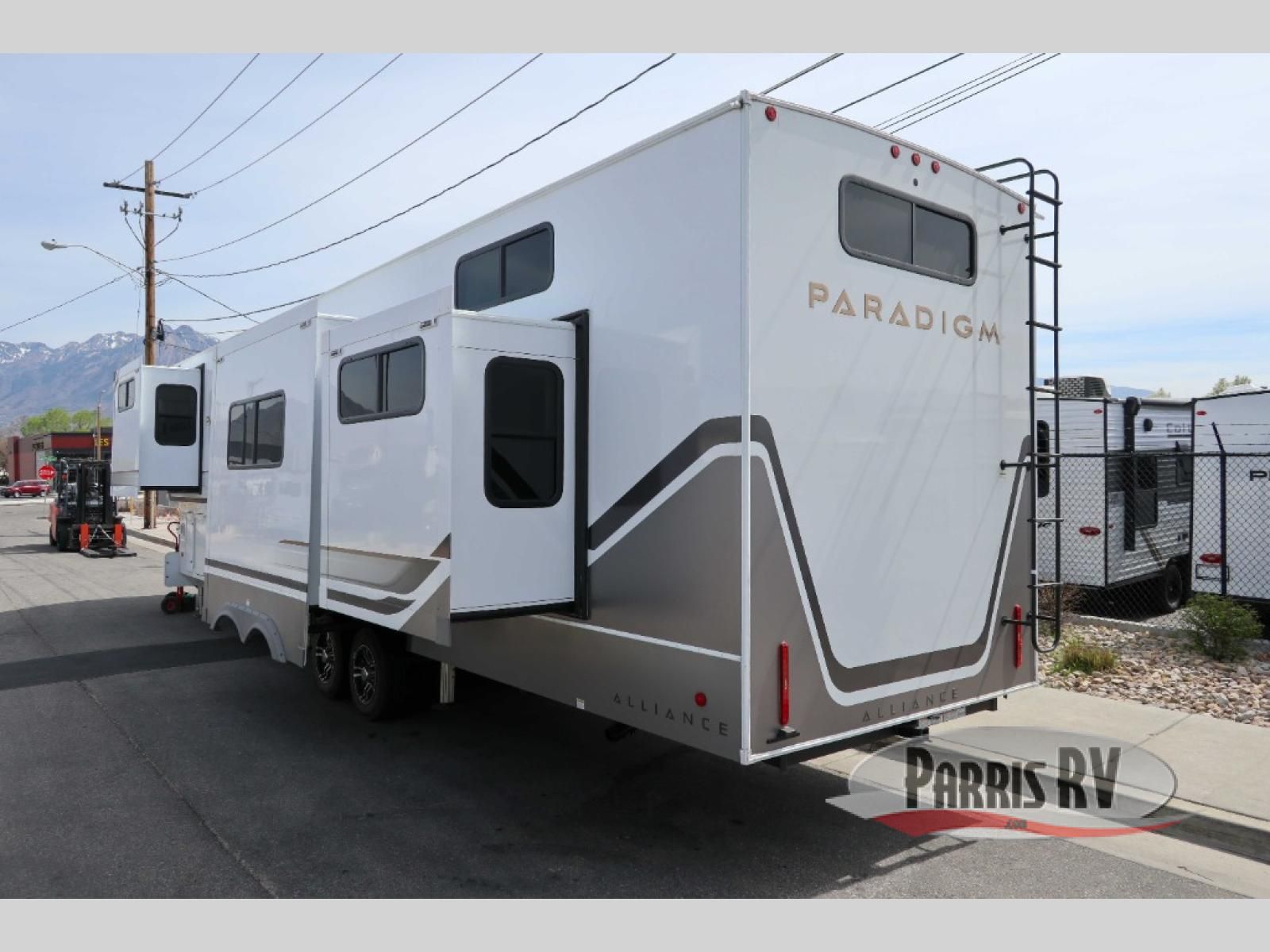 The Paradigm fifth wheels by Alliance RV are functional, high-quality, and luxurious for an unforgettable camping experience. There are three A/C units and a 40K BTU furnace to keep you comfortable year around, and you'll appreciate additional convenient amenities, like the all-in-one enclosed/heated utility center and the color coded and numbered wiring. A Helux Series coil spring pin box comes standard for hassle-free towing, along with Curt 8,000 lb. axles. You'll love the kitchen with its LG solid surface countertops and Lusso range, plus there is LED motion lighting in the pantry and a Maxx fan with a rain sensor to keep everything fresh when making dinner. Each model also includes an HD Smart TV in the living room and bedroom. And of course there are a variety of options you can choose from to further customize your fifth wheel; dual pane windows, Super Solar Plus, slide out awning toppers, and generator prep or a generator to name a few!