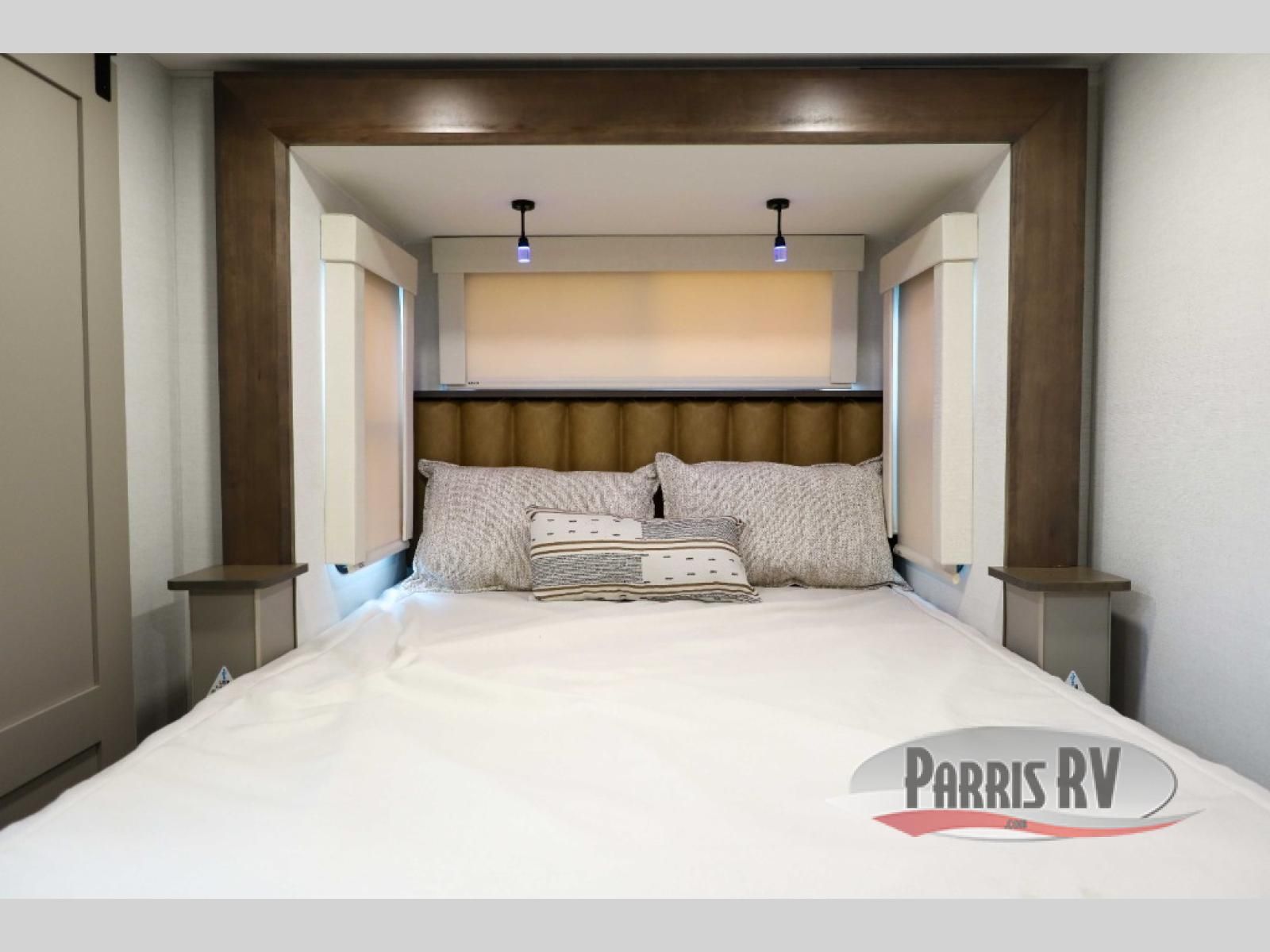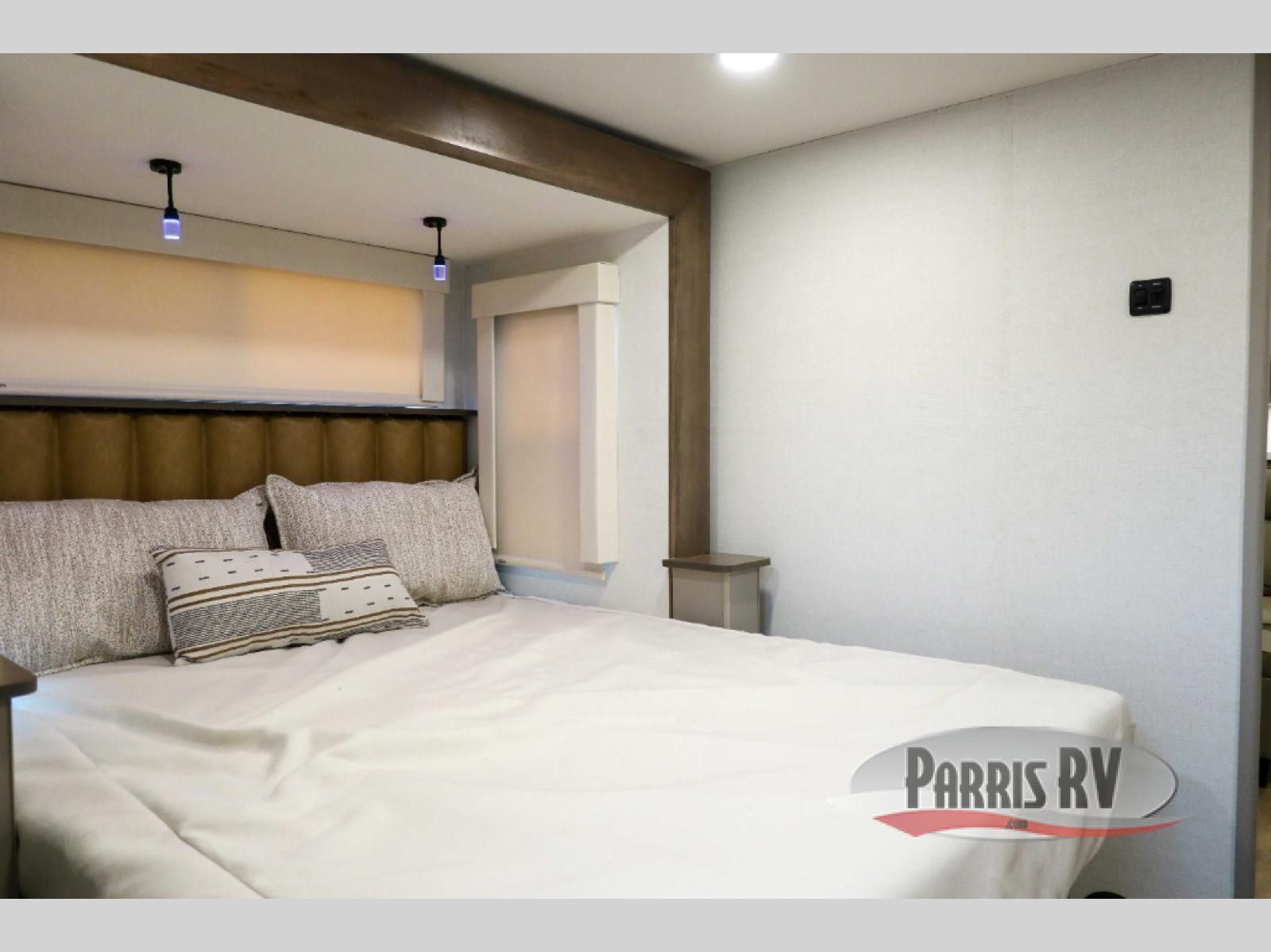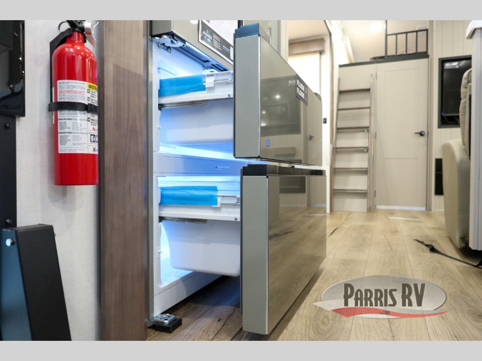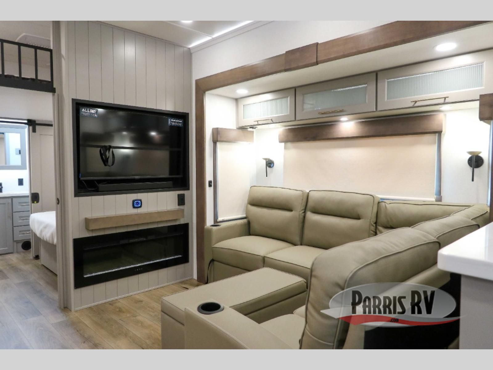 The Paradigm fifth wheels by Alliance RV are functional, high-quality, and luxurious for an unforgettable camping experience. There are three A/C units and a 40K BTU furnace to keep you comfortable year around, and you'll appreciate additional convenient amenities, like the all-in-one enclosed/heated utility center and the color coded and numbered wiring. A Helux Series coil spring pin box comes standard for hassle-free towing, along with Curt 8,000 lb. axles. You'll love the kitchen with its LG solid surface countertops and Lusso range, plus there is LED motion lighting in the pantry and a Maxx fan with a rain sensor to keep everything fresh when making dinner. Each model also includes an HD Smart TV in the living room and bedroom. And of course there are a variety of options you can choose from to further customize your fifth wheel; dual pane windows, Super Solar Plus, slide out awning toppers, and generator prep or a generator to name a few!
