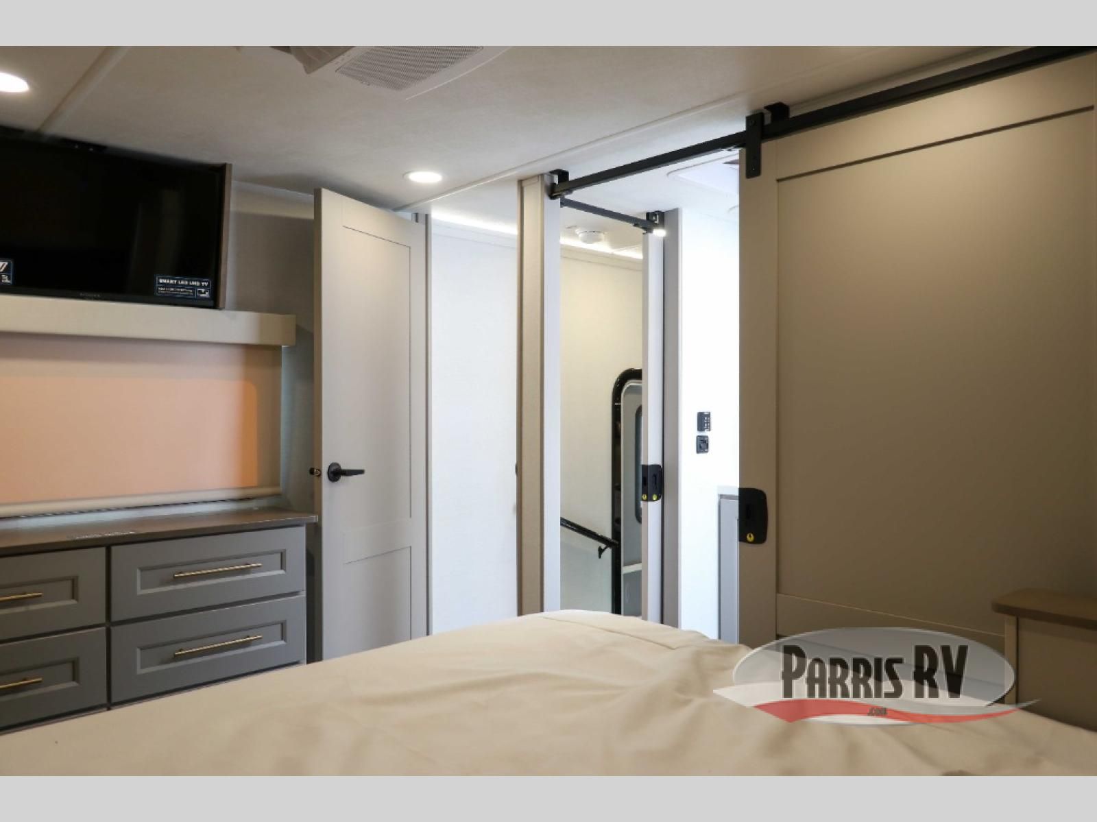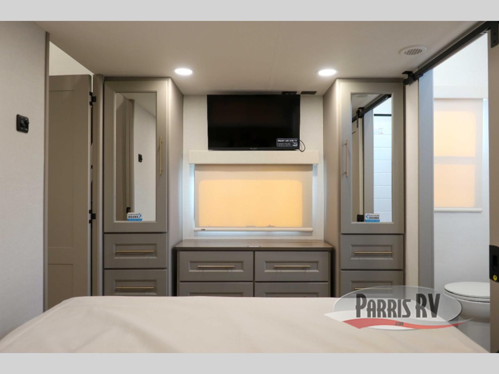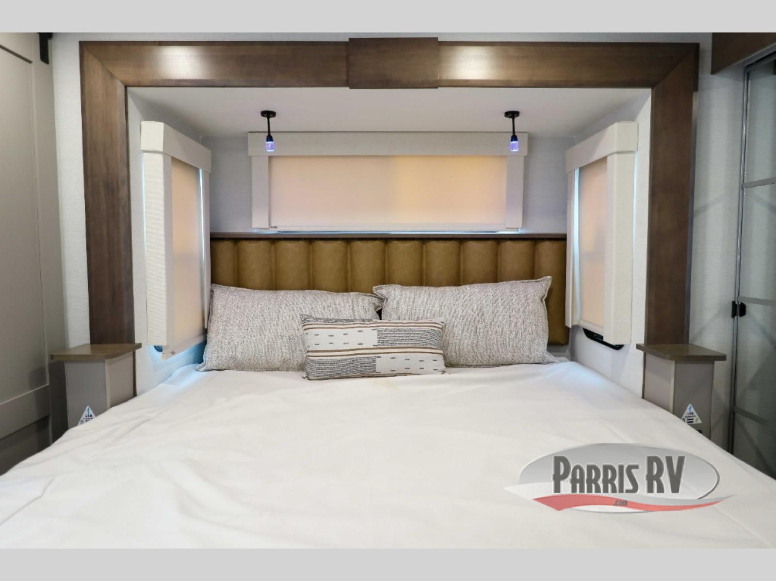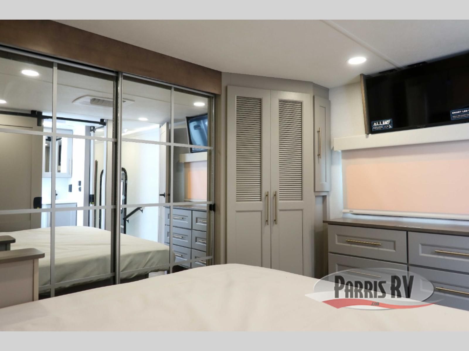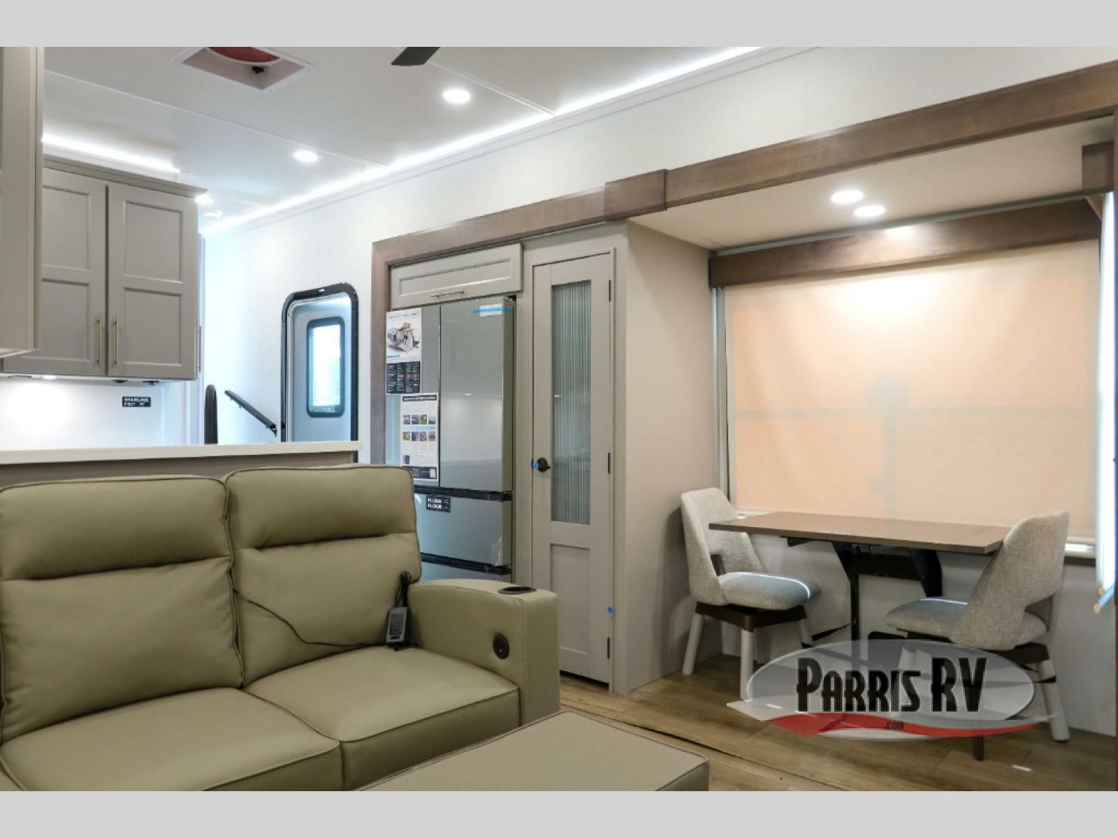 The Paradigm fifth wheels by Alliance RV are functional, high-quality, and luxurious for an unforgettable camping experience. There are three A/C units and a 40K BTU furnace to keep you comfortable year around, and you'll appreciate additional convenient amenities, like the all-in-one enclosed/heated utility center and the color coded and numbered wiring. A Helux Series coil spring pin box comes standard for hassle-free towing, along with Curt 8,000 lb. axles. You'll love the kitchen with its LG solid surface countertops and Lusso range, plus there is LED motion lighting in the pantry and a Maxx fan with a rain sensor to keep everything fresh when making dinner. Each model also includes an HD Smart TV in the living room and bedroom. And of course there are a variety of options you can choose from to further customize your fifth wheel; dual pane windows, Super Solar Plus, slide out awning toppers, and generator prep or a generator to name a few!