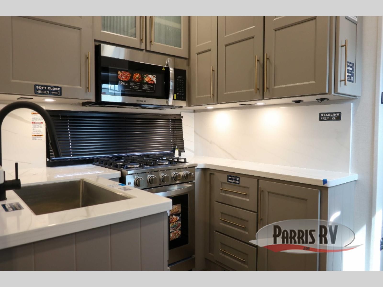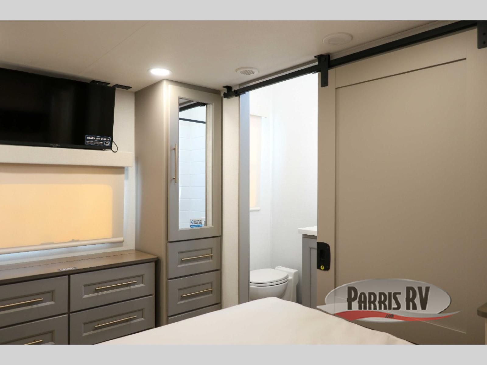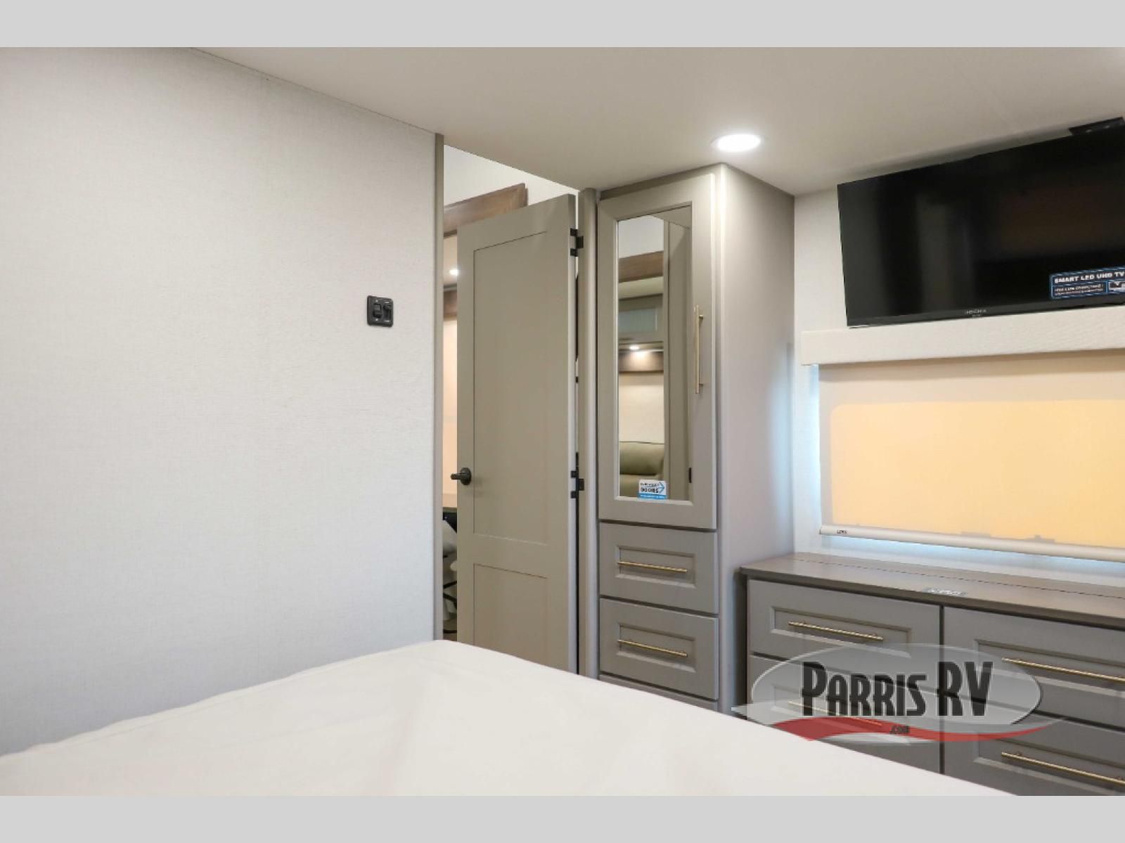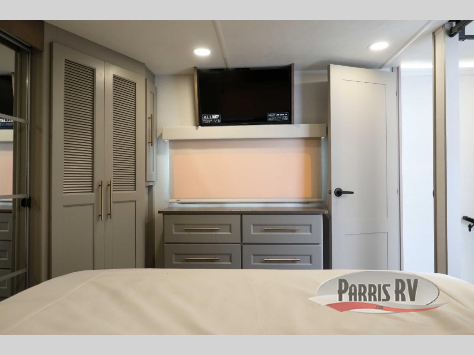 The Paradigm fifth wheels by Alliance RV are functional, high-quality, and luxurious for an unforgettable camping experience. There are three A/C units and a 40K BTU furnace to keep you comfortable year around, and you'll appreciate additional convenient amenities, like the all-in-one enclosed/heated utility center and the color coded and numbered wiring. A Helux Series coil spring pin box comes standard for hassle-free towing, along with Curt 8,000 lb. axles. You'll love the kitchen with its LG solid surface countertops and Lusso range, plus there is LED motion lighting in the pantry and a Maxx fan with a rain sensor to keep everything fresh when making dinner. Each model also includes an HD Smart TV in the living room and bedroom. And of course there are a variety of options you can choose from to further customize your fifth wheel; dual pane windows, Super Solar Plus, slide out awning toppers, and generator prep or a generator to name a few!