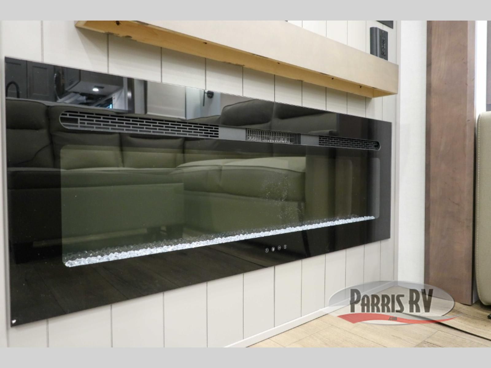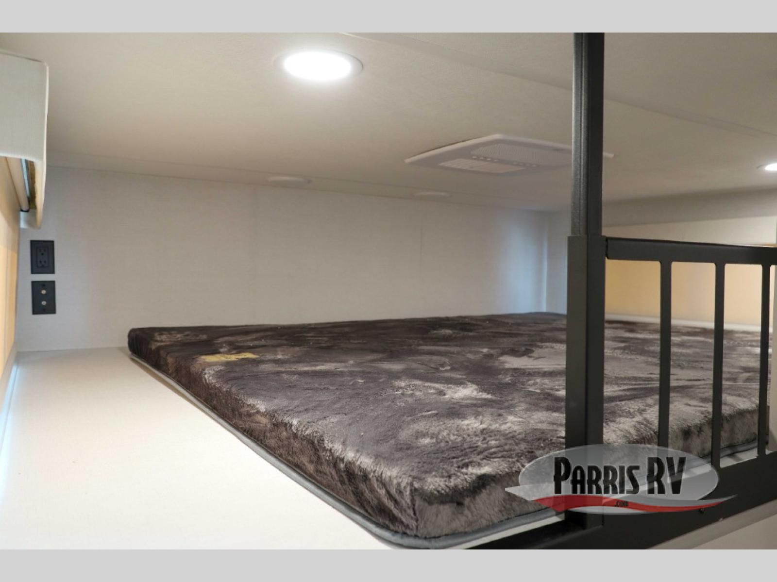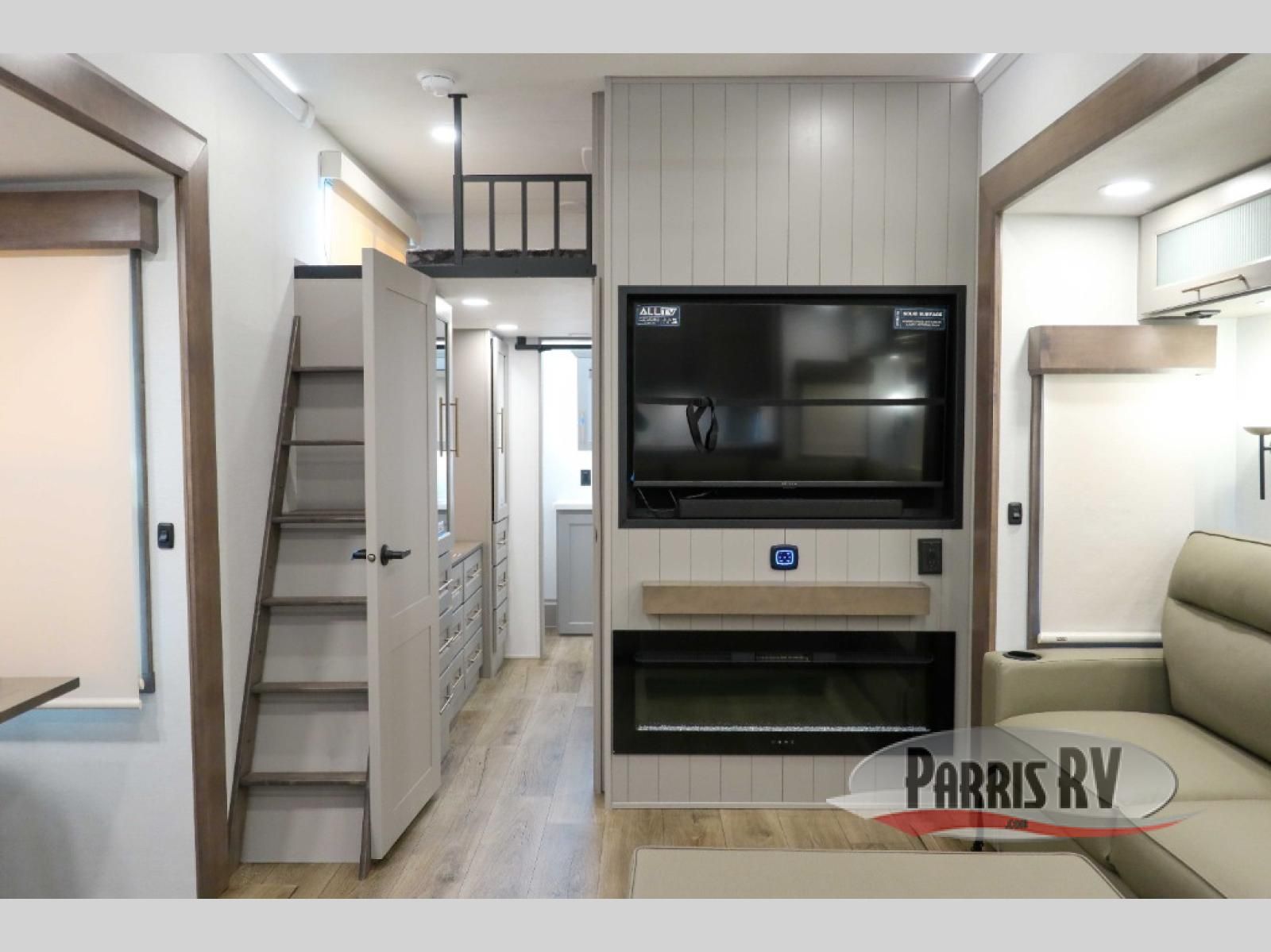A spacious unit with sleeping for eight with plenty of choices to suit everyone! There is a front private bedroom with a king size bed that offers a large full front closet that has also been prepped for a washer and dryer if you choose that option. The front bath features a 40" x 30" shower and dual entry. Head down to the kitchen and living space at the bottom of the stairs to find a curbside slide that houses the 19 cu. ft. residential refrigerator, a pantry, and a swivel table and desk. As you continue on toward the rear of this coach, you will find a spacious living area along the roadside with a 50" Smart TV and a fireplace, a L-sofa sleeper slide, and a dual reclining loveseat. This makes a great gathering place for television watching, game playing, and even added sleeping space if needed at night. The rear private bedroom with its own private bath features a queen bed, two closets, and a Smart TV as well. The multipurpose loft area above can be accessed just before this rear bedroom entry by a ladder, and it is perfect for extra storage, or it can be used for added sleeping that the kiddos are sure to love.