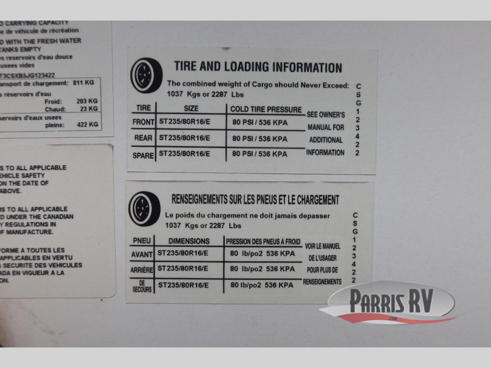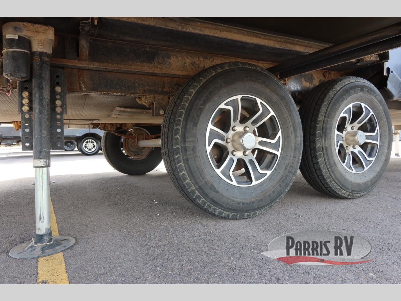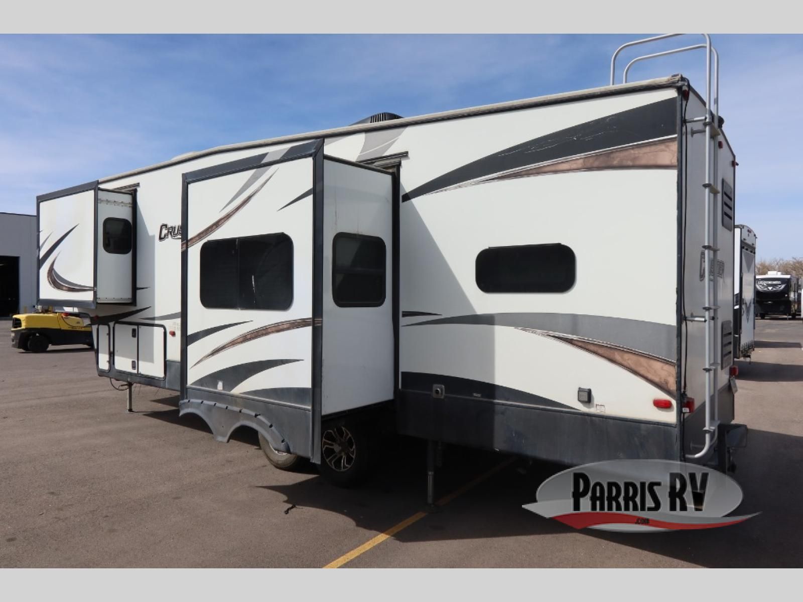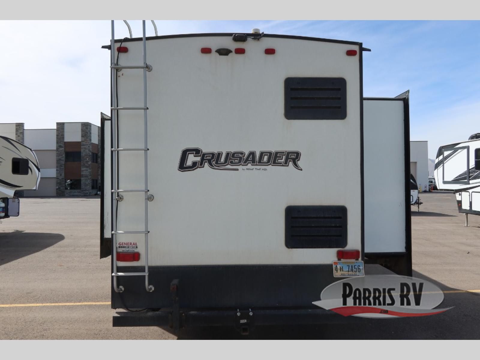 This Crusader fifth wheel contains all of the elements that you love best about your own home. Whether you have stopped to take a quick nap in the front, private bedroom or you are whipping up an afternoon snack in the rear kitchen, you will enjoy the many benefits that this unit provides. Everyone will love gathering together in the open-concept living area because the three slides that have been inserted in this unit allow it to offer extra room to keep this fifth wheel spacious and accommodating.