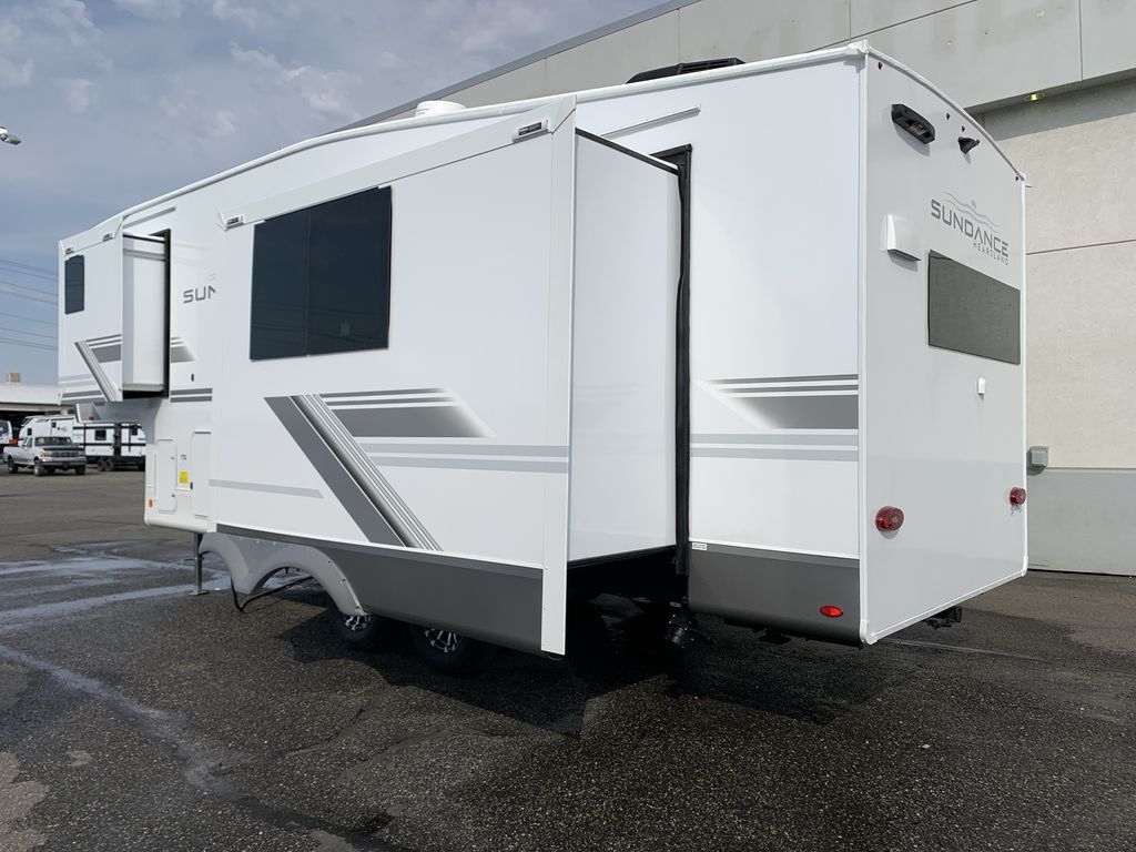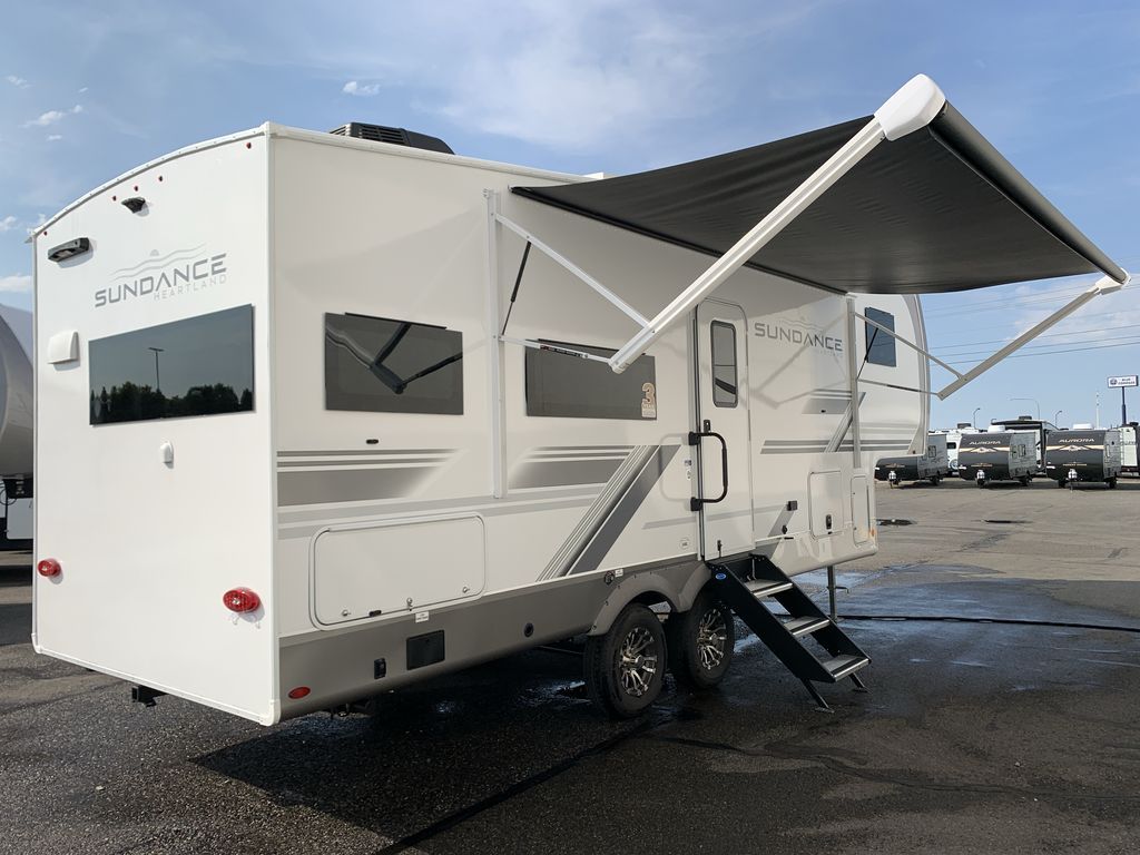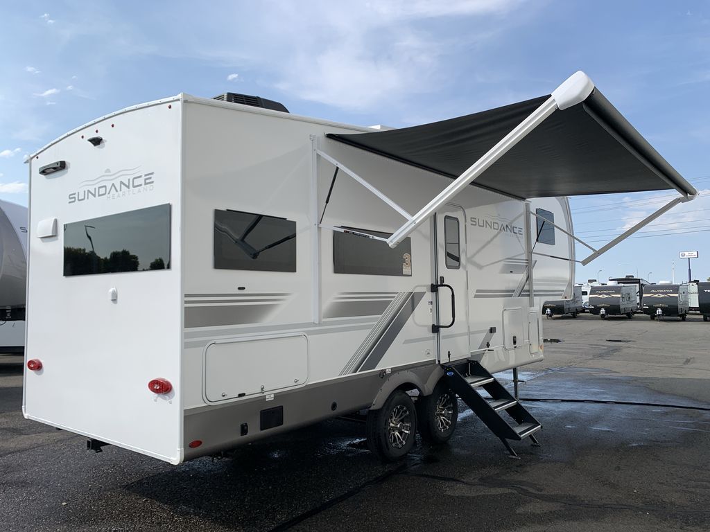 Each Heartland Sundance Fifth Wheel features ThermaShield, a zero-degree tested weather protection system that ensures comfort. This system features a fully enclosed and heated underbelly (ducted) that protects vital systems and provides warmth in cold climates. The AeroChill directional cooling system offers precise temperature control, creating a refreshing and comfortable atmosphere. Inside, you can stay connected on the go with the multiple USB-C 12V charging ports, and the Winegard Air 360 4G + Antenna & router prep that ensures reliable internet connectivity and seamless streaming. The units boast 5/8 in. tongue-and-groove plywood flooring, providing a sturdy and durable foundation, a Keyed-Alike lock system, and the rainproof bathroom power vent ensures a comfortable bathroom experience, removing moisture and odors efficiently.