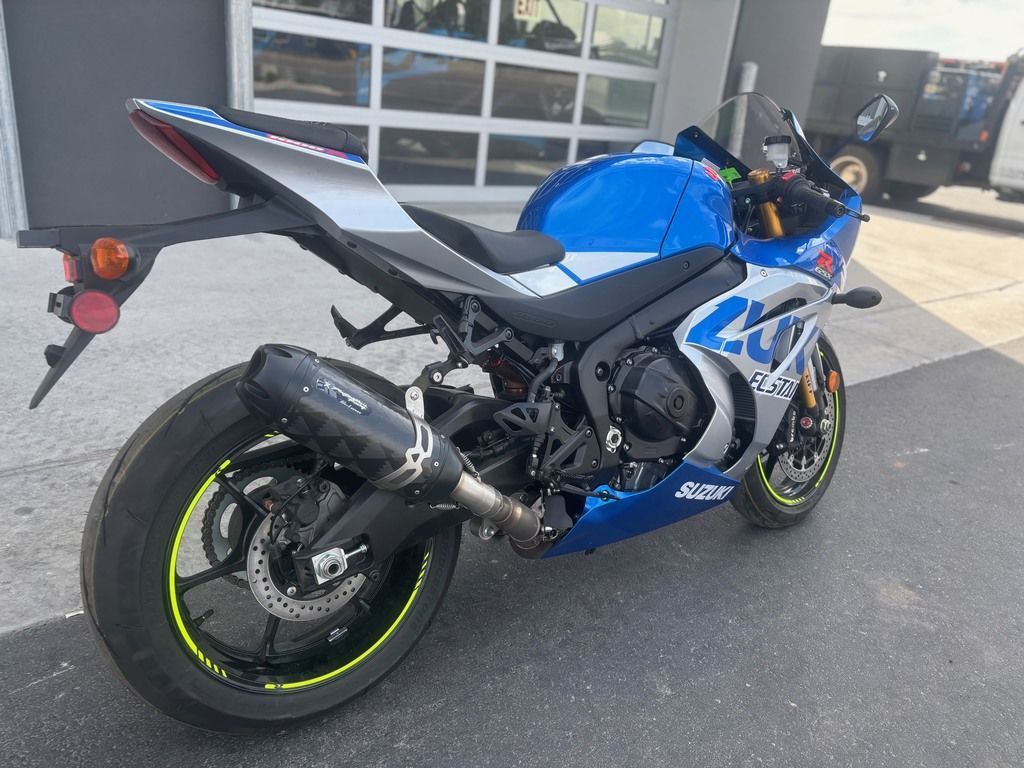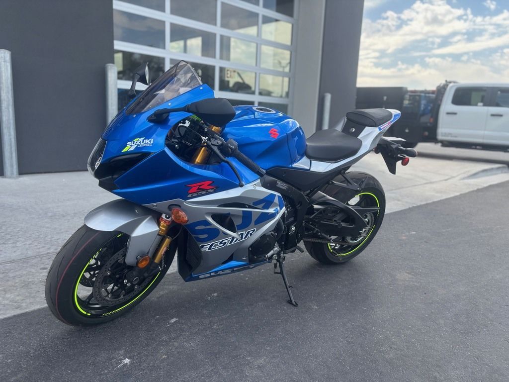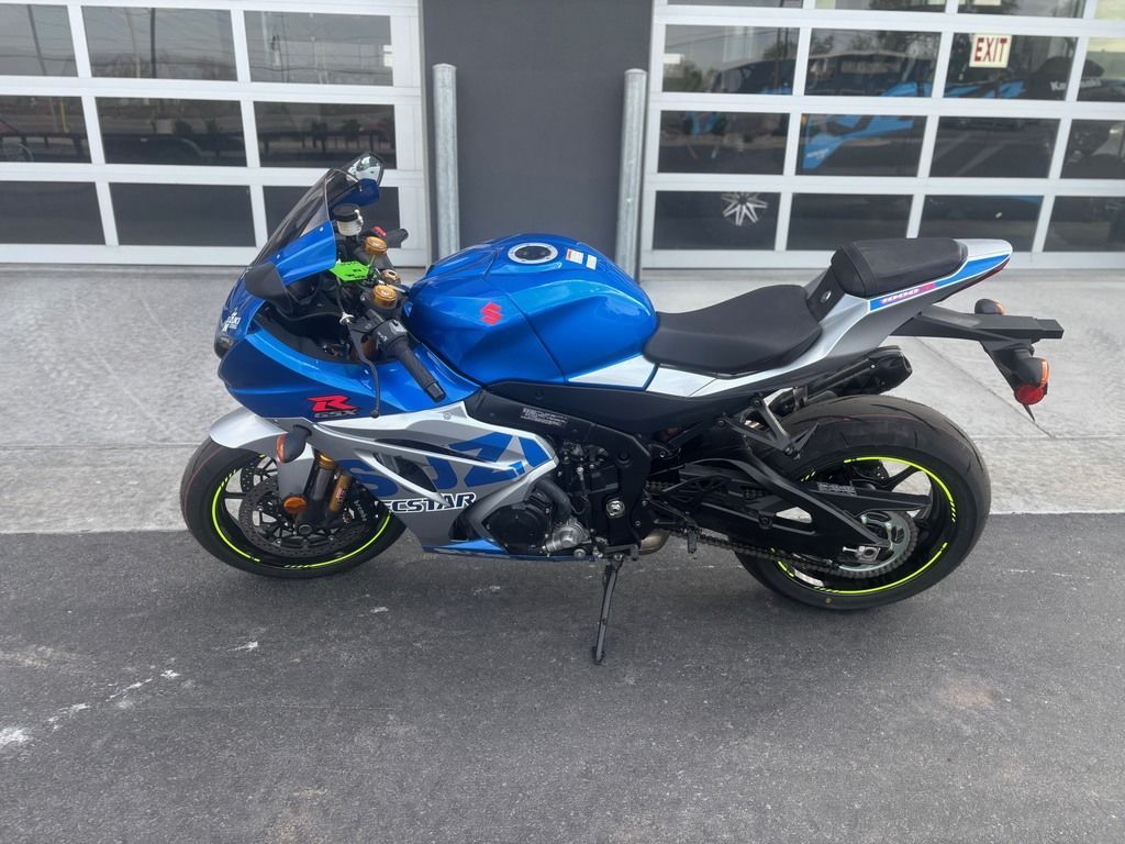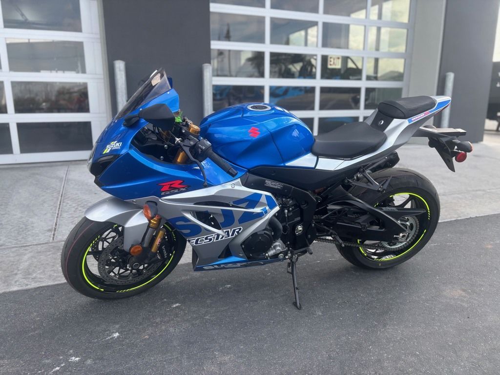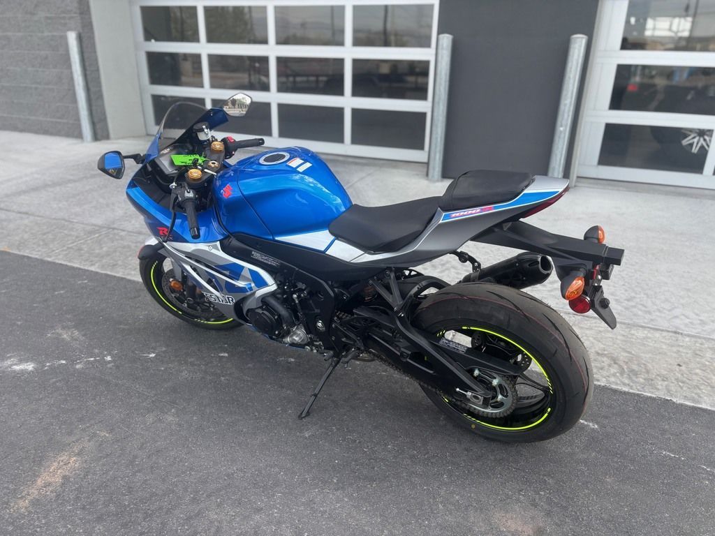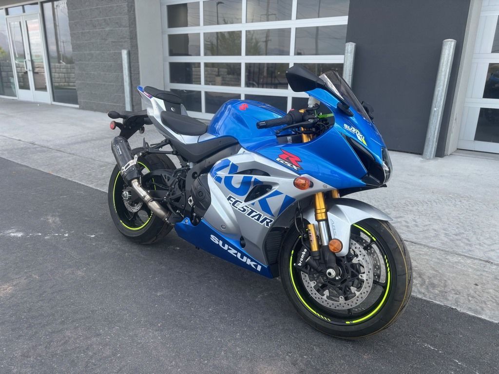 Used 2021 Suzuki GSX-R750 100th Anniversary Edition Motorcycle For Sale In Salt Lake City, UT This Pre-Owned 2021 Suzuki GSX-R750 100th Anniversary Edition Motorcycle is for sale at Karl Malone Powersports SLC conveniently located in Salt Lake City, Utah. Our knowledgeable team is eager to assist you, so don’t hesitate to contact us today to schedule an appointment. If this isn't the exact Suzuki Motorcycle you're looking for don't hesitate to go back and revise your search. We're sure to have the perfect Motorcycle for you in our showroom in Utah. We invite you to visit us at Utah’s premier Suzuki dealer for new and pre-owned Motorcycles for sale. Let us help you find the ideal Motorcycle to take home today! Karl Malone Powersports SLC Address: 1379 W 3300 S, Salt Lake City, UT 84119 Phone: (801) 972-8725 2021 Suzuki GSX-R750 100th Anniversary Edition During a century of innovation, Suzuki has created motorcycles that have positively transformed the riding experience. Over three decades ago, Suzuki revolutionized sportbikes with the introduction of the GSX-R750. Ever since then, the GSX-R750 has remained true to its original concept and championship-winning heritage. On the road or on the track, the GSX-R750 delivers a breathtaking combination of outstanding engine performance, crisp handling, compact size, and light weight. Its secret is an unequaled pairing of 750cc performance with the lightweight, compact chassis of a 600cc Supersport, complemented by technologically advanced suspension front and rear. Try a GSX-R750 and you’ll quickly realize this motorcycle defines performance riding from the center of the sportbike class. Features may include: The GSX-R750 was born and raised on the racetrack, and for 2021 that styling features a metallic blue and silver paint scheme that celebrates Suzuki's 100th anniversary. This anniversary scheme includes graphics that honor Suzuki's long standing commitment to racing. The GSX-R750’s fuel-injected, 750cc, four-cylinder engine powers a balanced sportbike experience. This engine pulls strong off the bottom like a larger-displacement powerplant while it builds revs like a smaller mill – it’s the best of both worlds. ENGINE Compact, 750cc, four-cylinder engine with a race-proven over-square bore/stroke ratio produces remarkably strong high rpm power delivery. The energy-efficient engine employs forged pistons, shot-peened connecting rods, chrome-nitride-coated upper compression and oil control rings, and pentagonal ventilation holes to reduce frictional and mechanical losses. Lightweight titanium alloy valves are controlled by single-coil valve springs to reduce valve-train mass, reducing mechanical losses at high rpm. CHASSIS Lightweight and compact twin-spar aluminum alloy frame is constructed of five cast sections to produce a balance of light weight and strength. The frame is mated with a cast aluminum swingarm and multi-piece rear sub-frame that’s ready for racetrack use. Race-develo