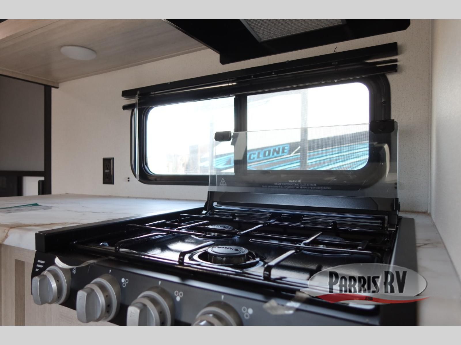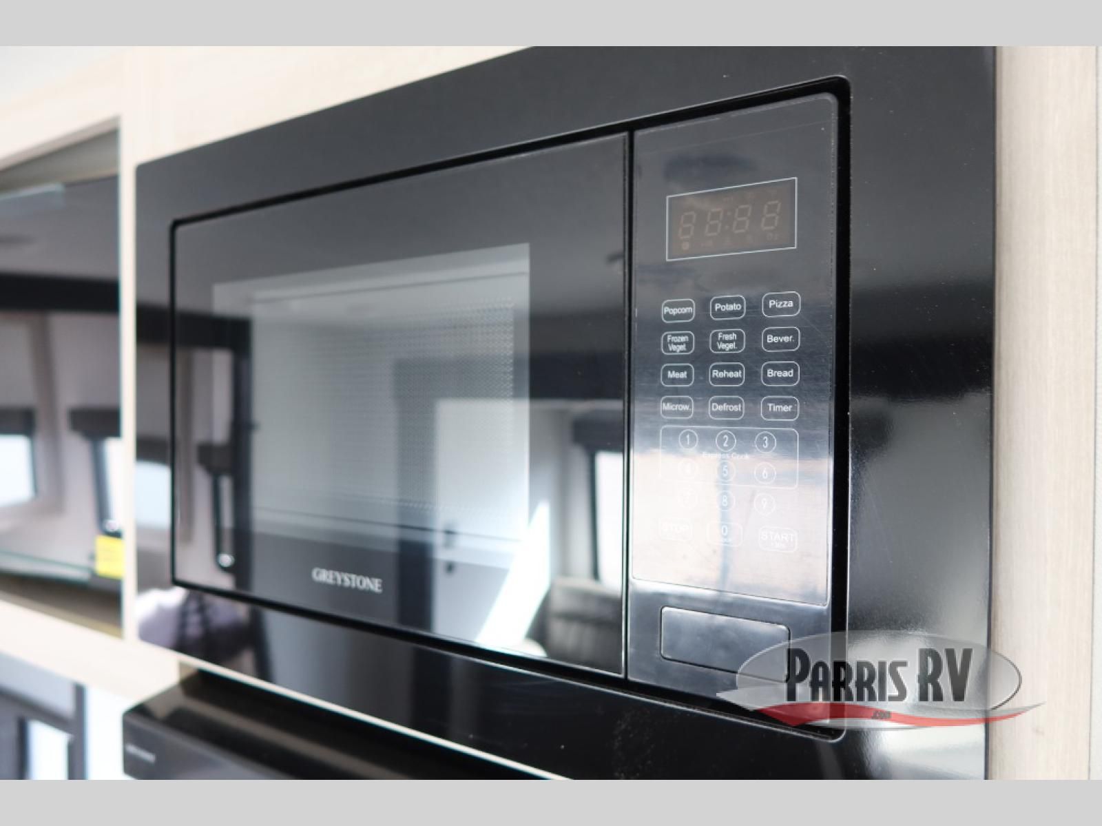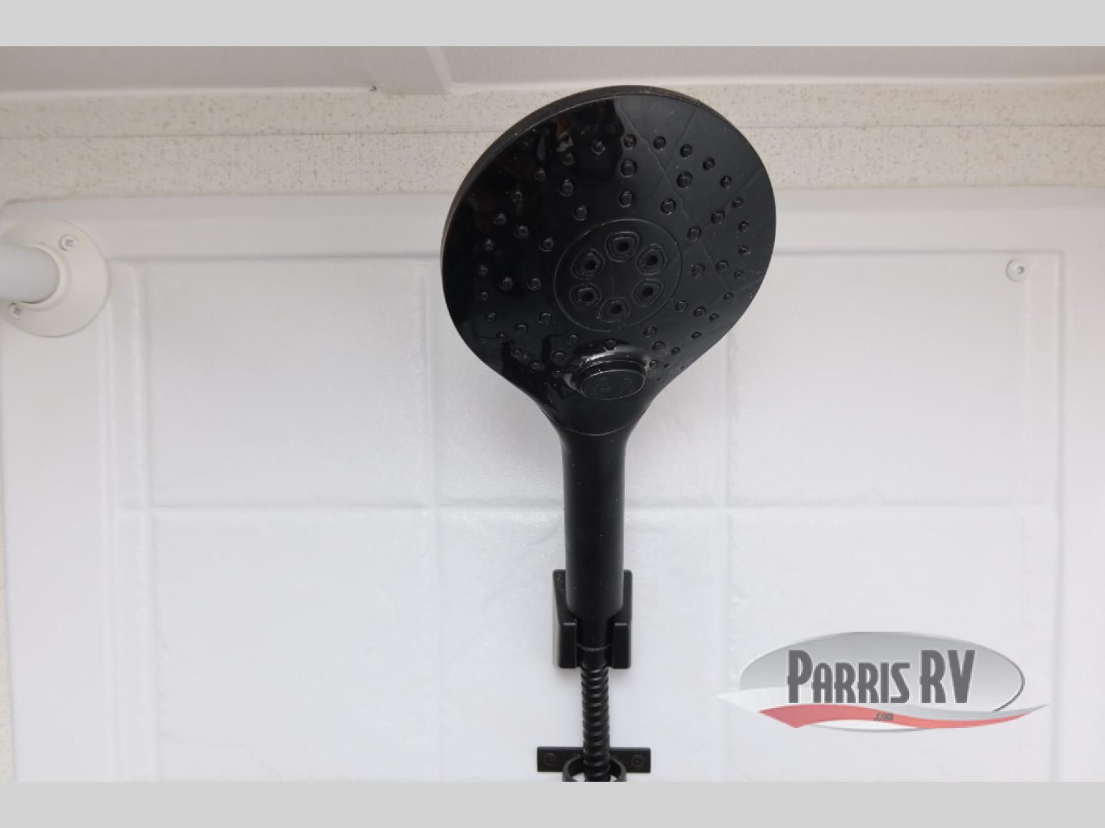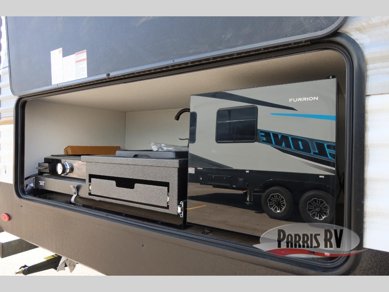 If you're looking for more space, this double axle, double slide out unit is perfect for your group of eight. Within the large slide in the living room, you'll find the booth dinette and sofa, which sit across from the optional TV if you want to enjoy movie nights. The full kitchen includes a microwave and three burner cooktop to make meals, plus a pantry and 12V refrigerator for food storage. And an optional outside mini kitchen with a grill can be added if you enjoy cooking outdoors! Your guests or littles are sure to enjoy the rear private bunkhouse that features a set of 38" x 76" bunks across from the third bunk and jiffy sofa within a slide out!