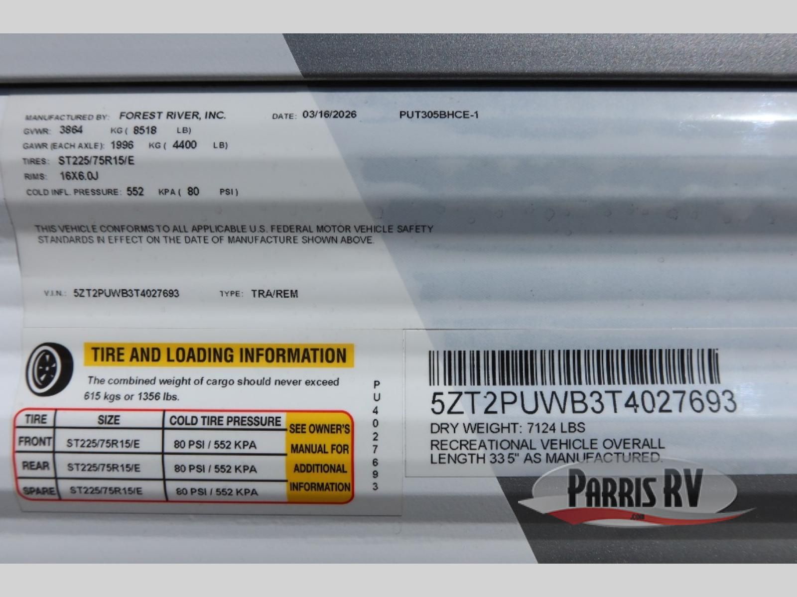 Forest River Puma Camping Edition travel trailer 305BHCE highlights: