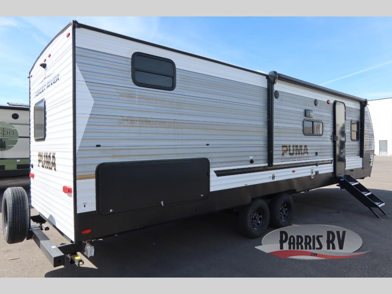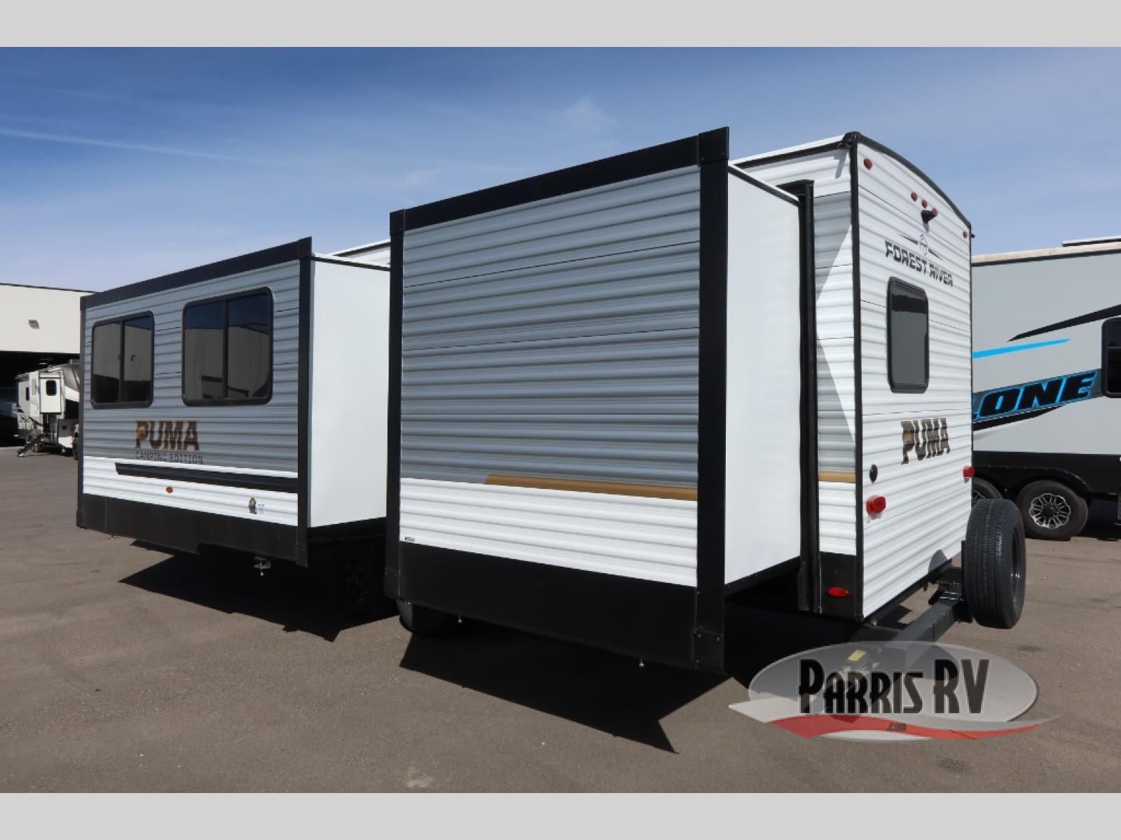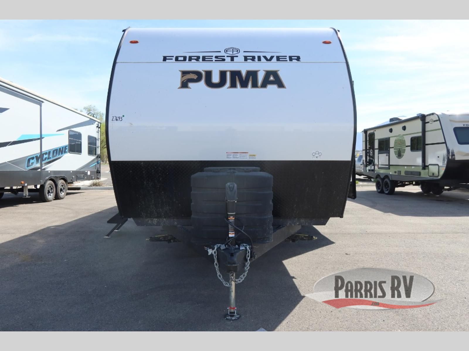 The Puma Camping Edition by Forest River offer an affordable travel trailer for rookie campers or seasoned RVers! They are built with 5/8" tongue and groove plywood flooring and a front diamond plate for added protection. There are also exterior magnetic baggage door latches, back up camera prep, a battery disconnect. Head inside to find Thermofoil countertops with a smooth drop edge, bedroom USB ports and outlets, and pleated shades in the living room.
