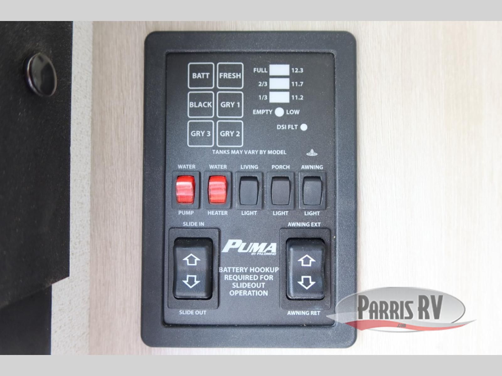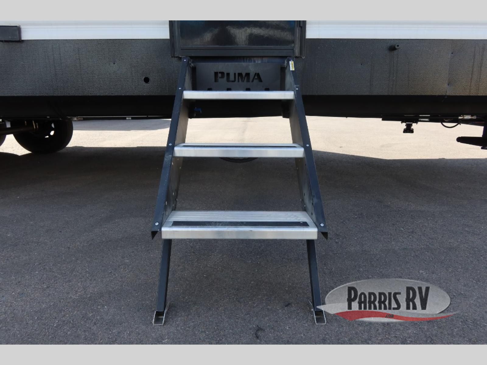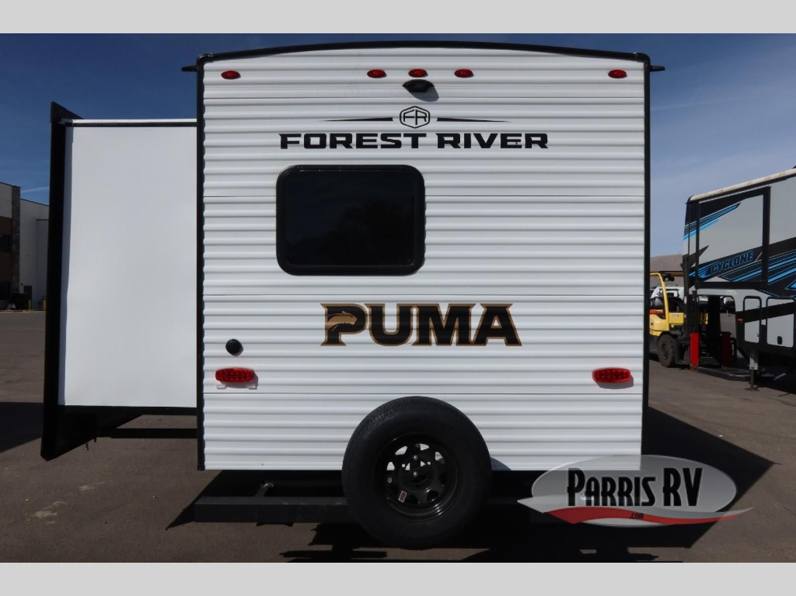 The Puma Camping Edition by Forest River offer an affordable travel trailer for rookie campers or seasoned RVers! They are built with 5/8" tongue and groove plywood flooring and a front diamond plate for added protection. There are also exterior magnetic baggage door latches, back up camera prep, a battery disconnect. Head inside to find Thermofoil countertops with a smooth drop edge, bedroom USB ports and outlets, and pleated shades in the living room.