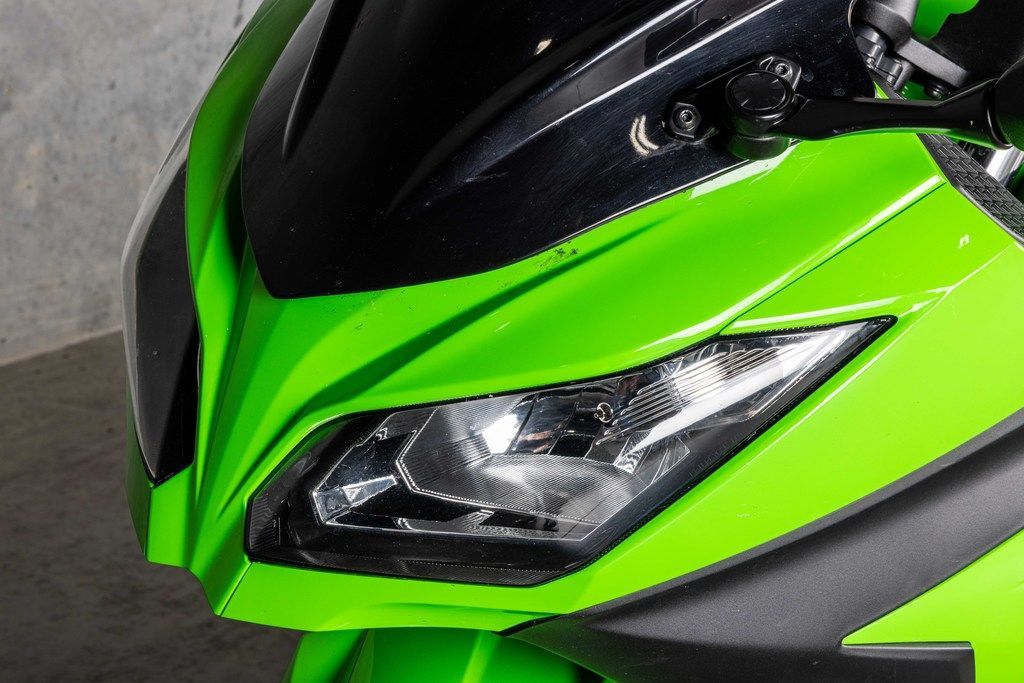 The Ninja 300 is an “entry-level” bike that features major influence from its bigger Ninja supersport brothers. Dual headlamps, a stylish seat cowl, sleek, aerodynamic body panels, and a wide rear tire all come together to make the Ninja 300 a motorcycle embraced by new and experienced riders alike.