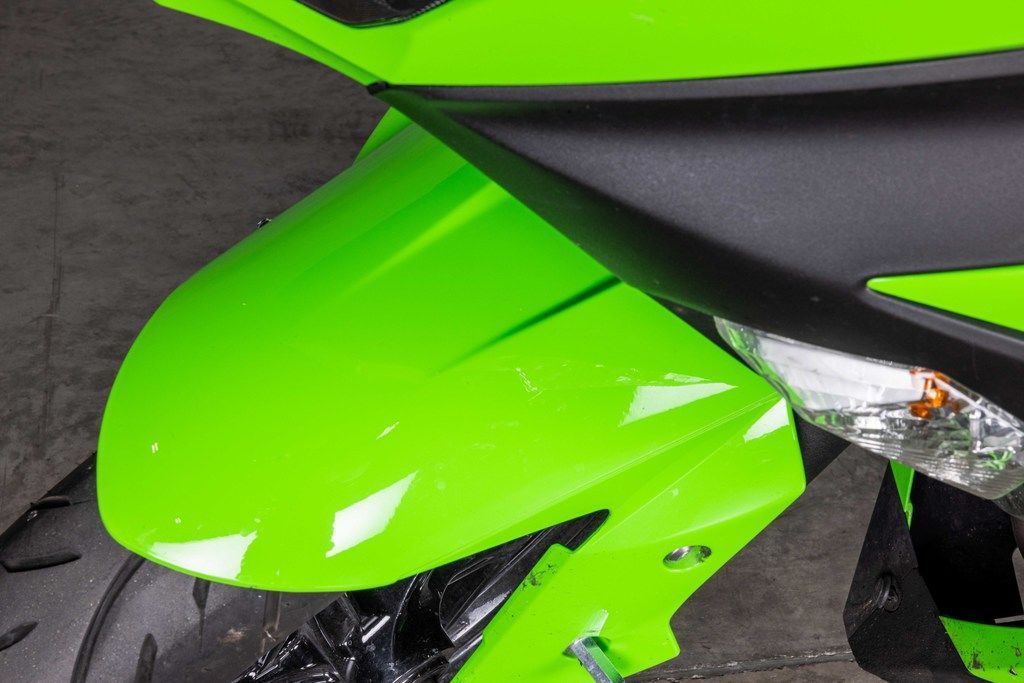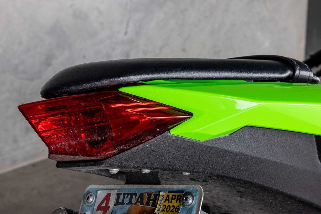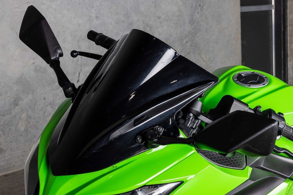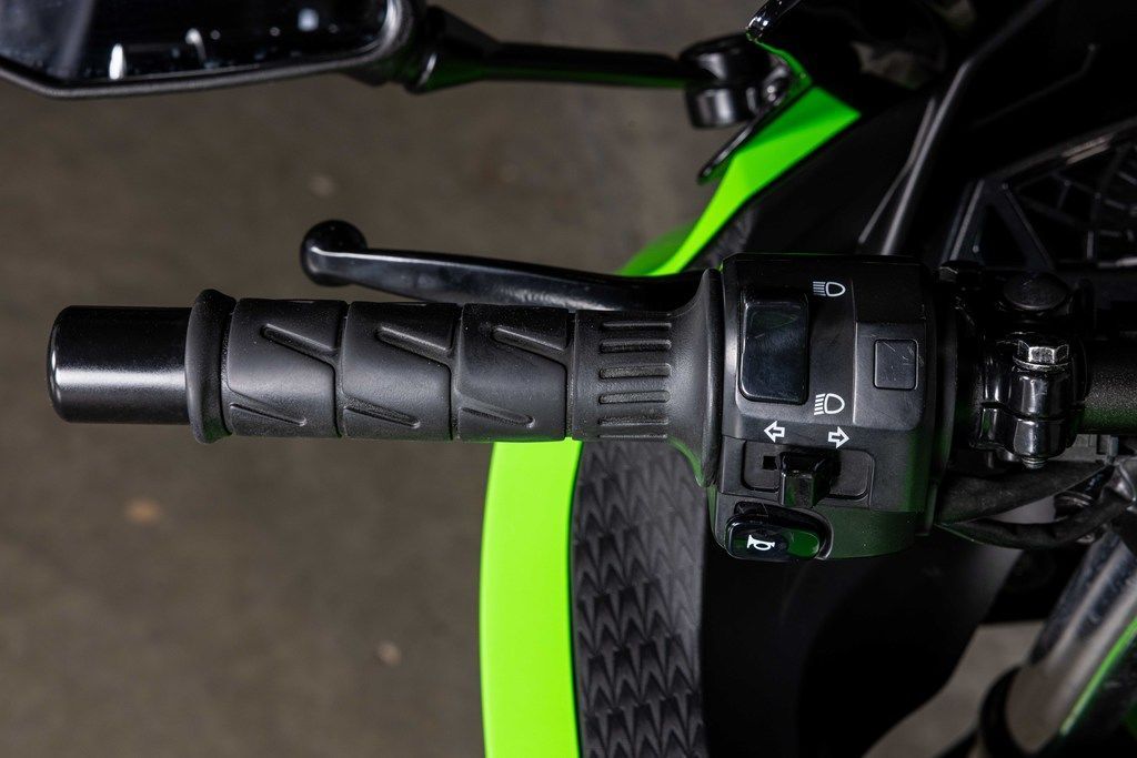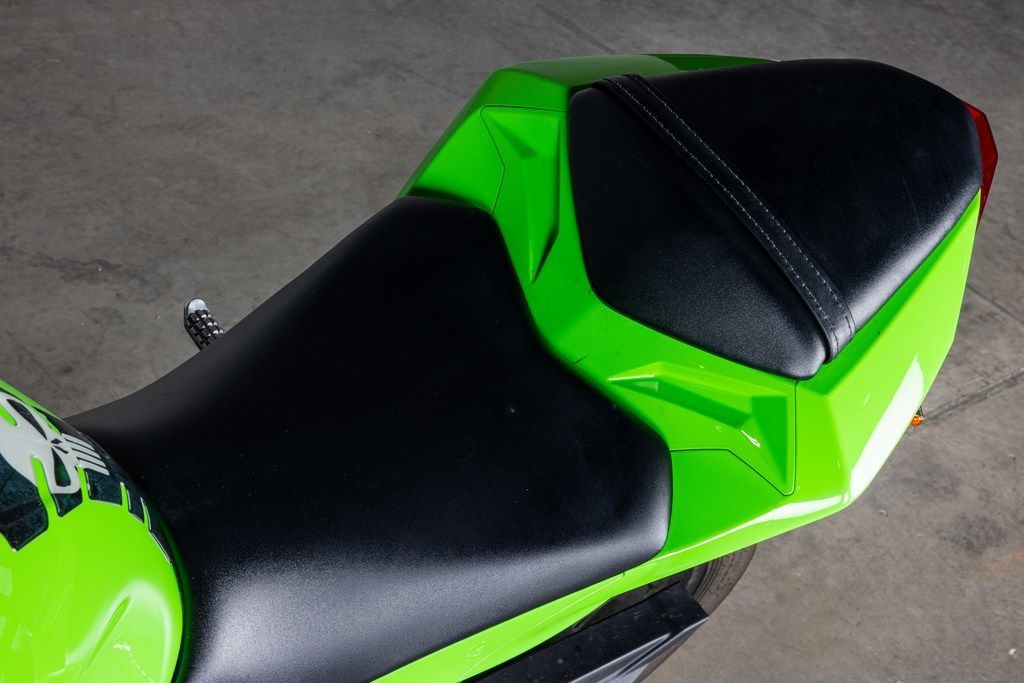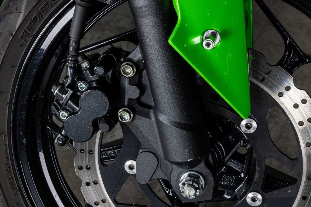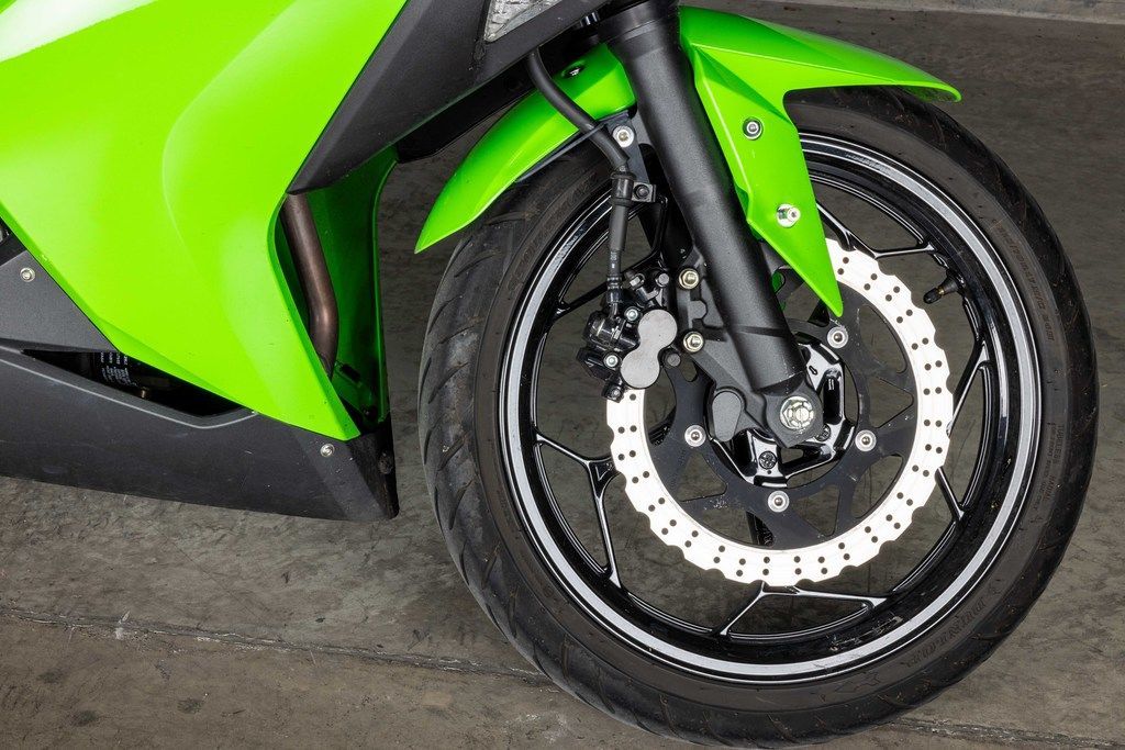 A quick glance at the wheels on the Ninja 300 and they’ll seem familiar. That’s because they were styled to be similar to the 10-spoke design found on the Ninja® ZX™-14R.