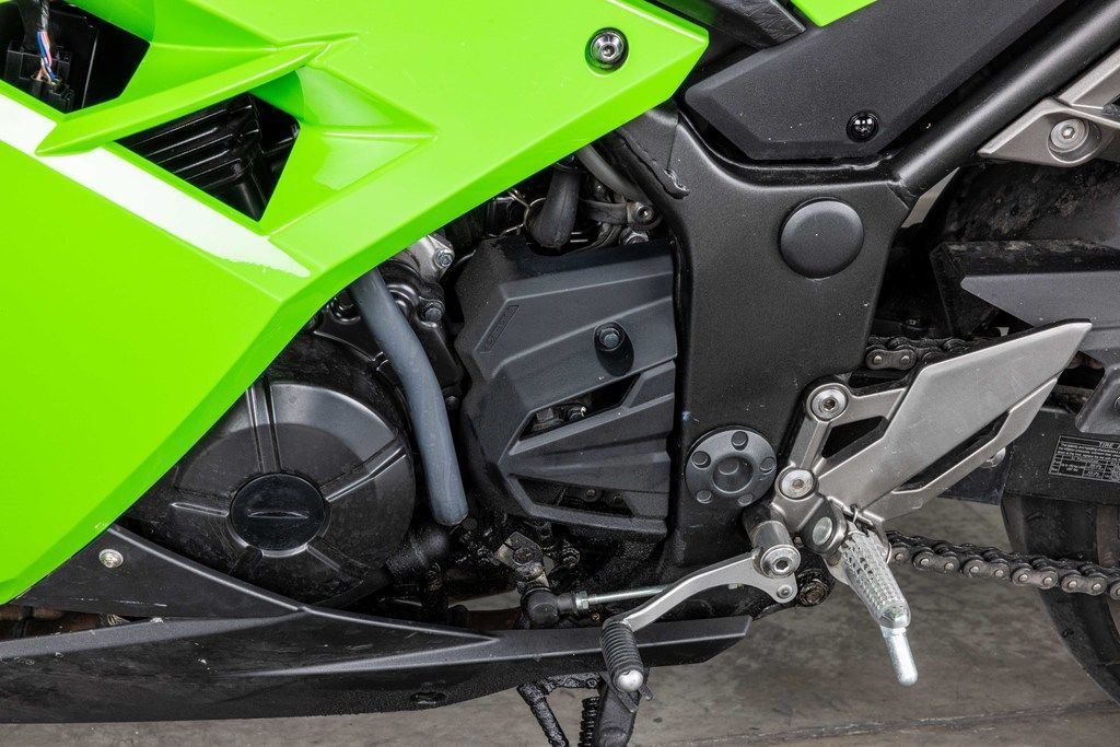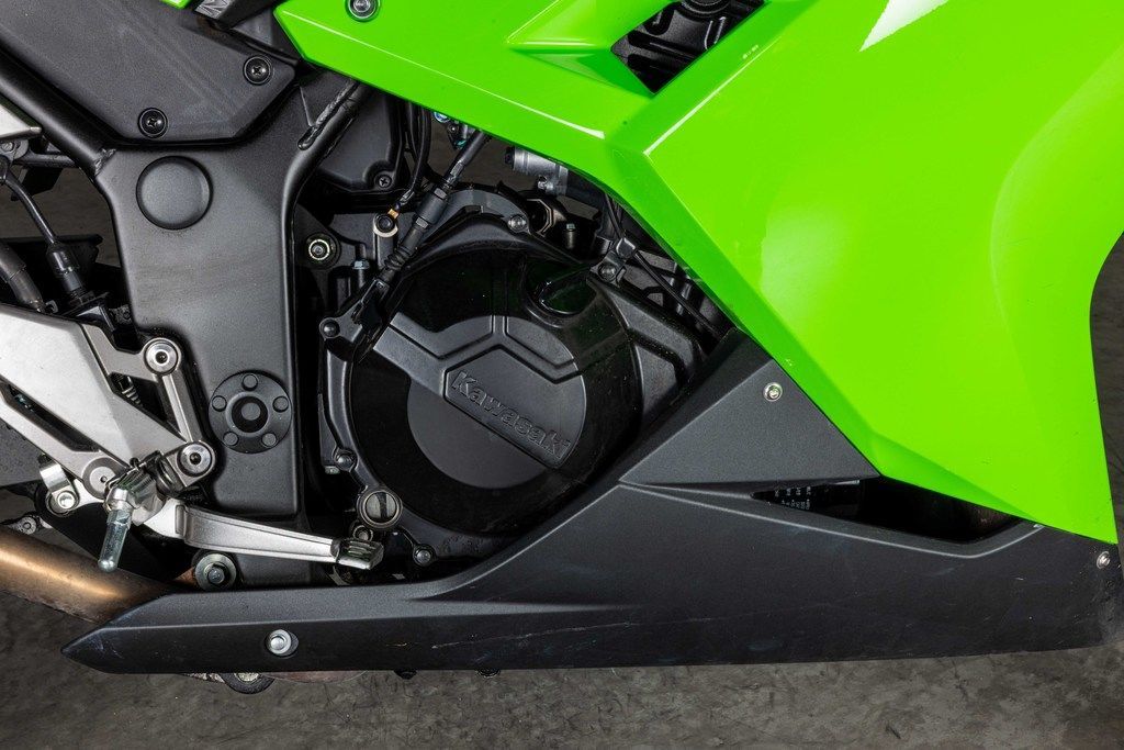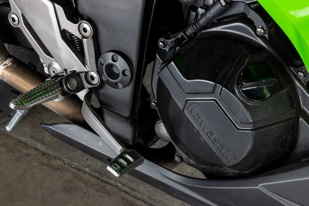The 296cc, liquid-cooled DOHC, 8-valve parallel twin is designed to outperform the competition, while still offering characteristics that helps make an engine feel friendly for the novice rider. Contributing to the confidence-inspiring feel of the Ninja 300 engine is a cylinder head design that takes full advantage of the main- and sub-throttle valves to deliver plenty of low- and mid-range power, as well as rubber engine mounting to reduce vibration.