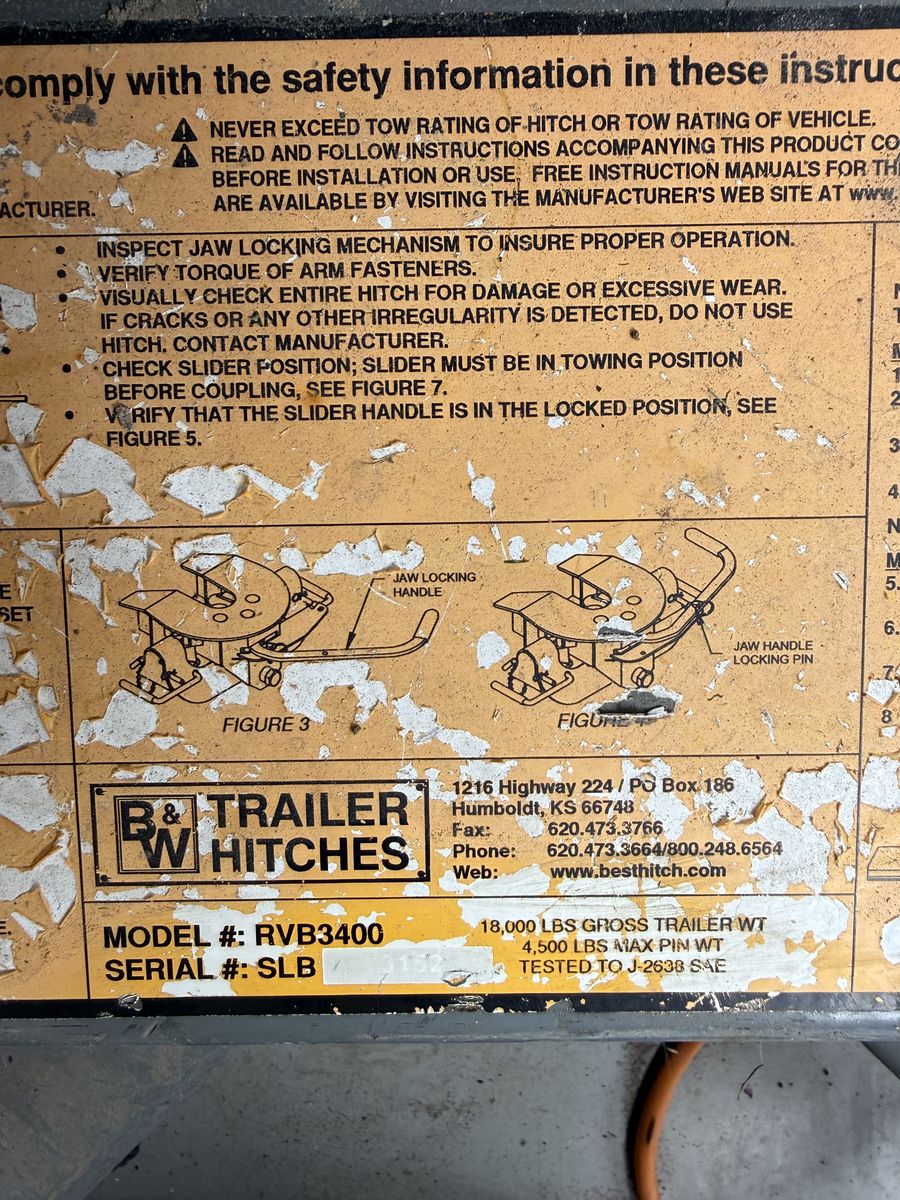 VenmoB&W Companion Slider 5th wheel hitch for sale – model RVB3400. This is a heavy-duty, American-made hitch known for its strength and smooth, quiet towing.