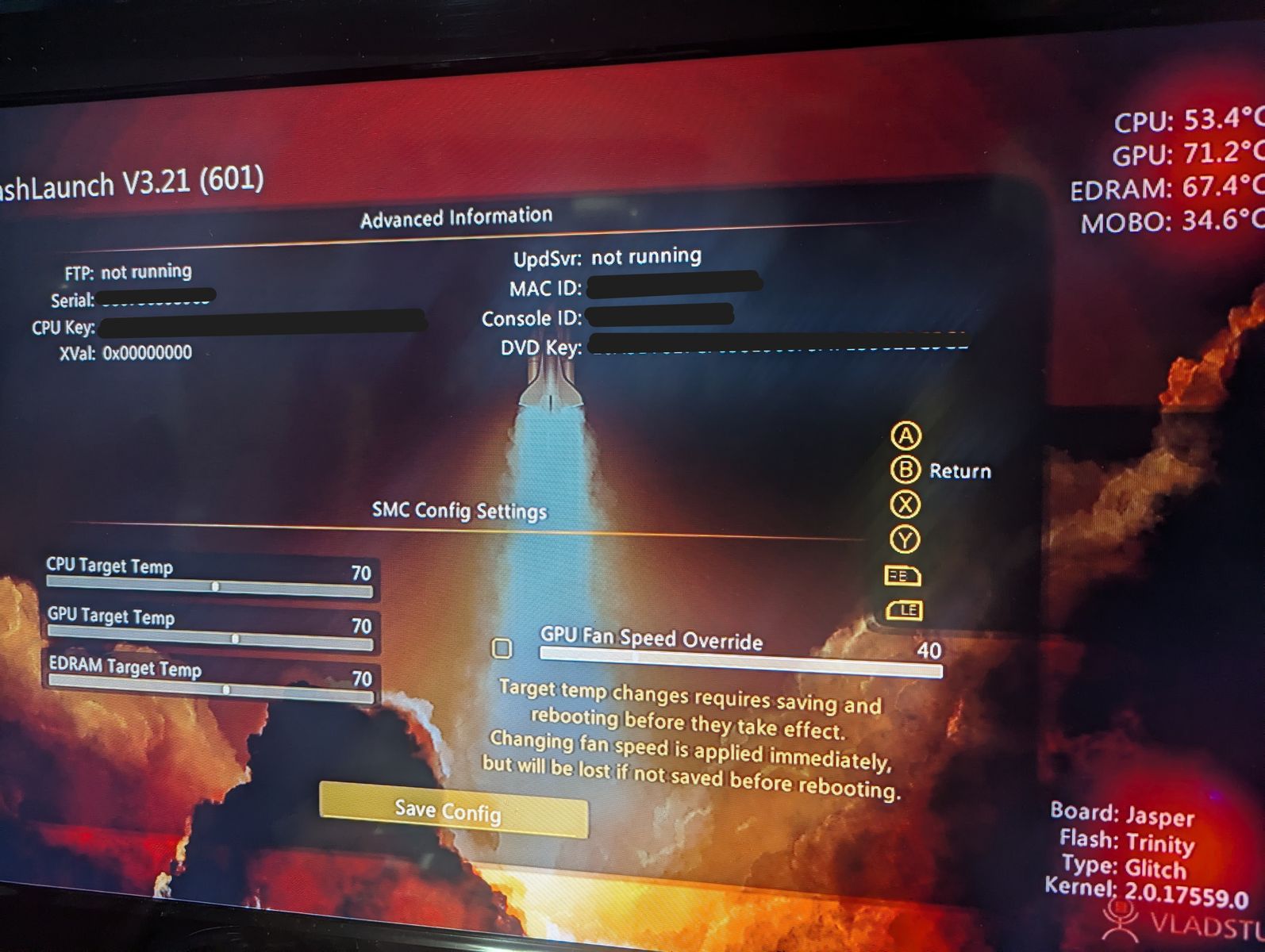 As for the software, it has Aurora as the dashboard, and I set the temp targets in DashLaunch to be ~70 C, so no worries about overheating (unless you don't ever clean your consoles, or house in general).