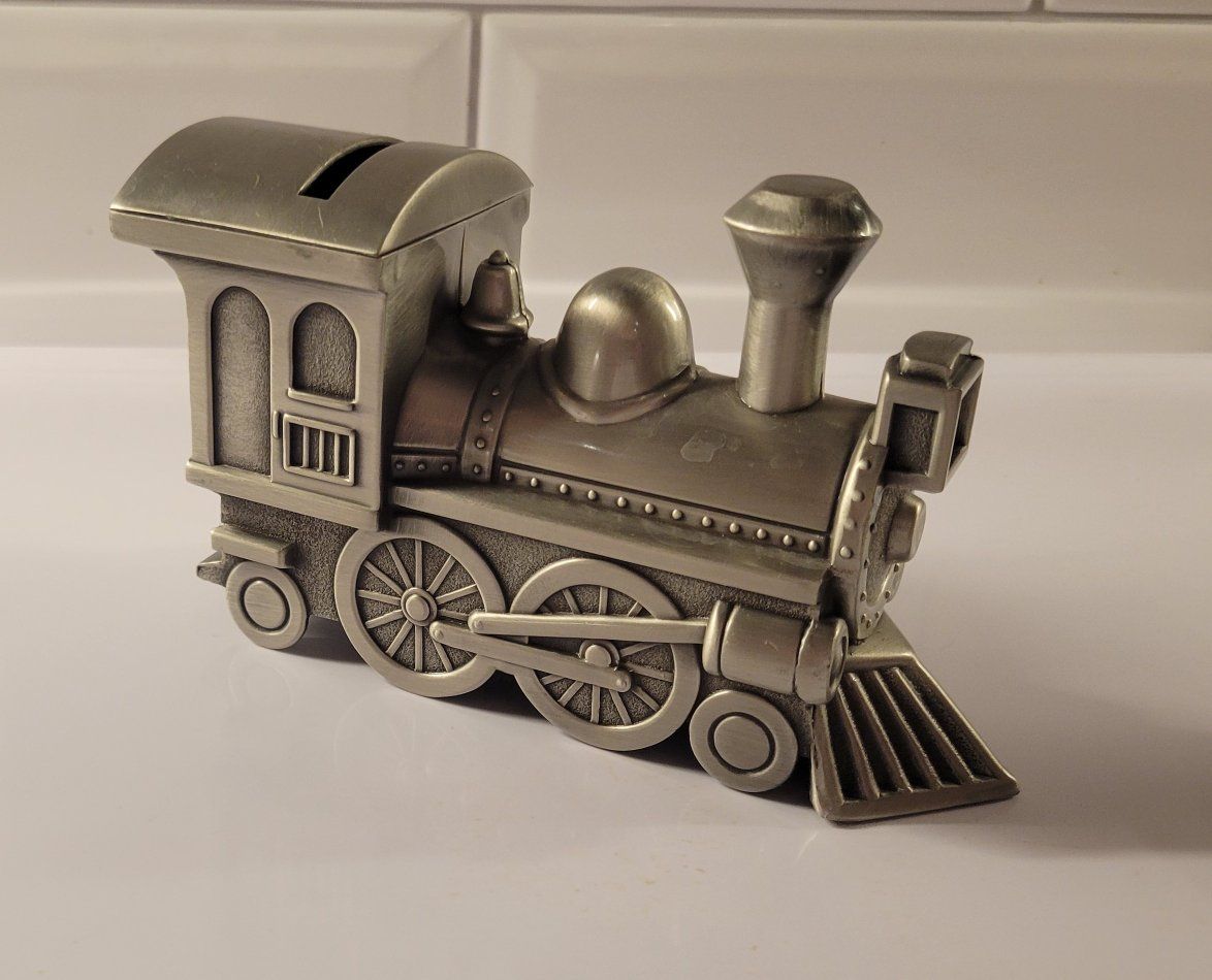 Pewter train bank. I have a pewter piggy bank too. Please check out my other KSL listings.