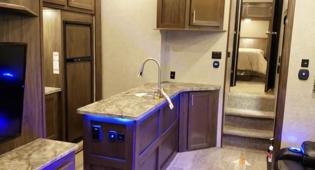 Spacious Living: Large slide-outs provide an open-concept kitchen and living area with premium finishes.