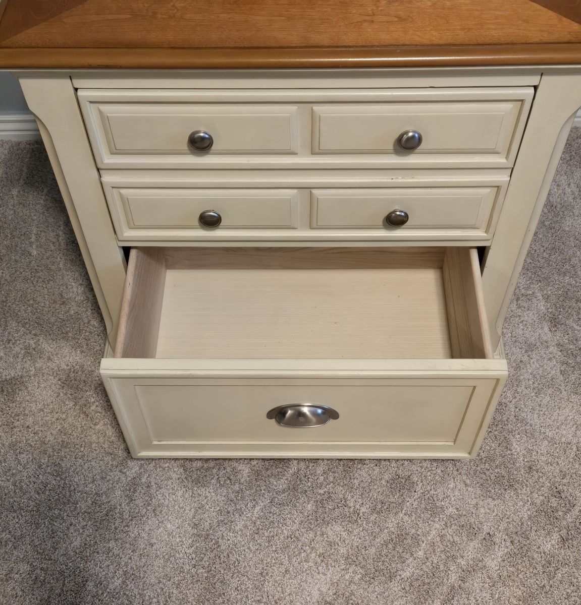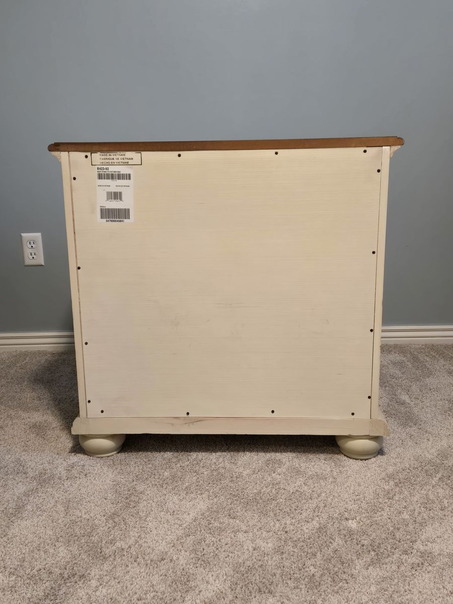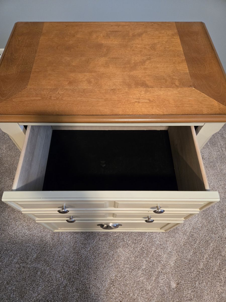 Ashley Furniture Cottage night stand with 2 working drawers. Top drawer has a velvet lining, bottom wood. 28 W x 18 D x 28 H