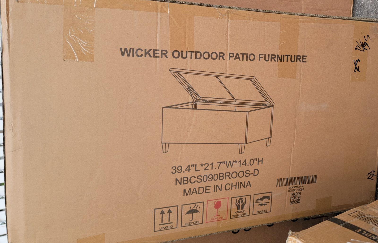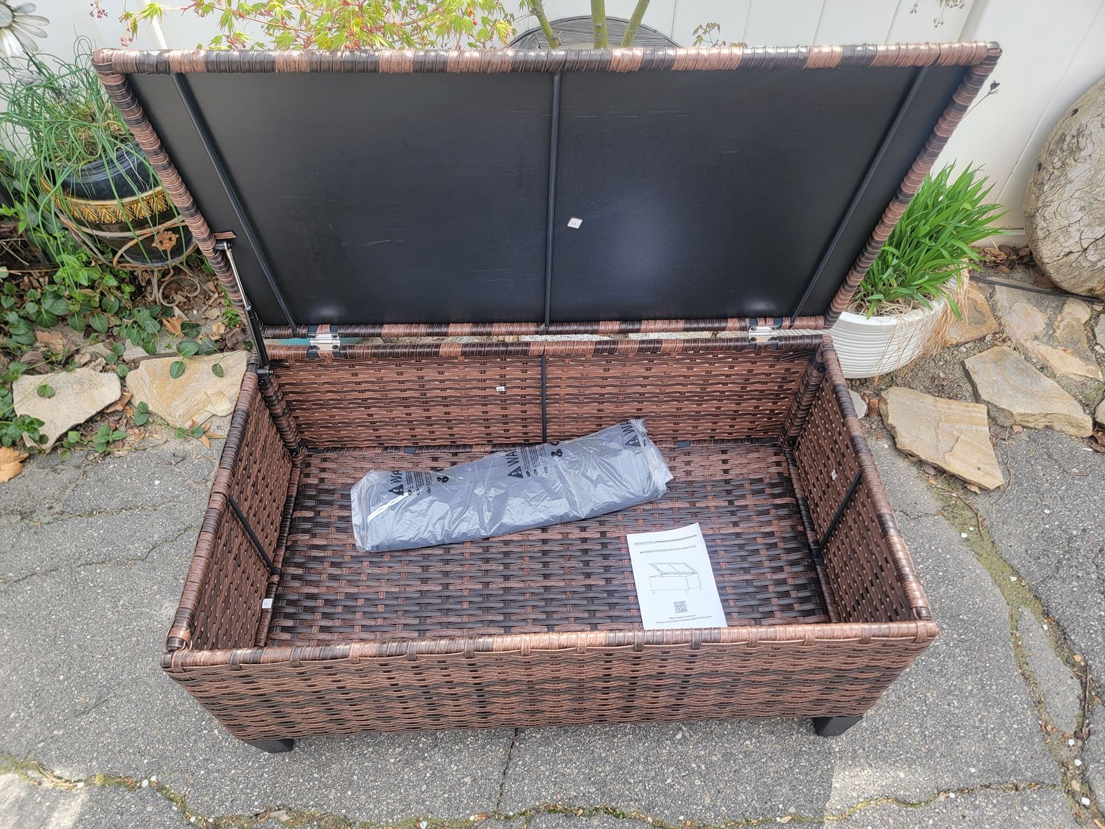 Outdoor Wicker Storage Box - 50 Gallon PE Rattan Storage Container with Lid. 39x21. 5x19". $85