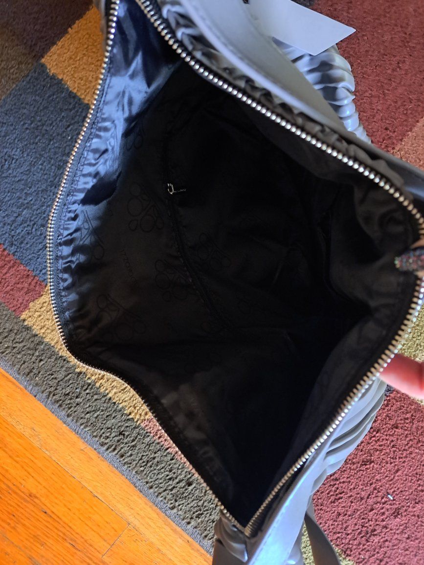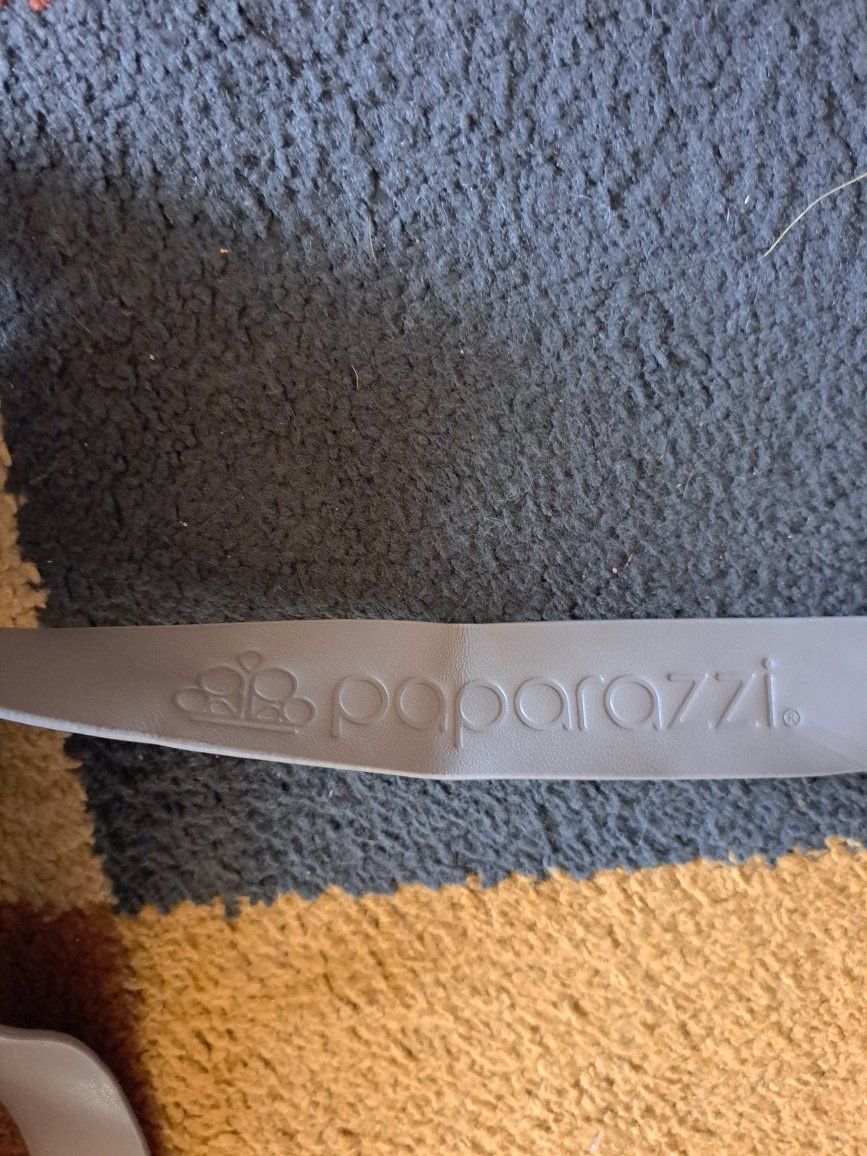 Cute Paparazzi brand gray bag. Large size and never been used. Opening measures 15 inches across and 14 inches long. This item comes from a smoke free home. Please contact me by text.