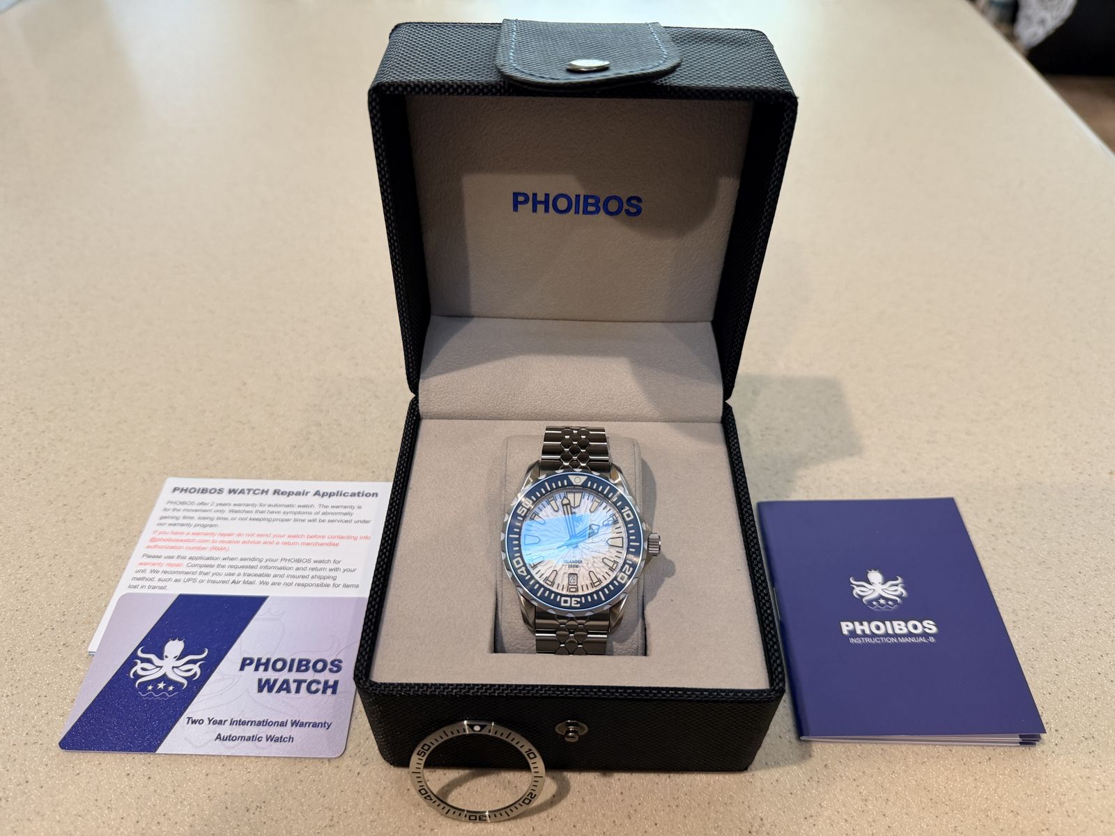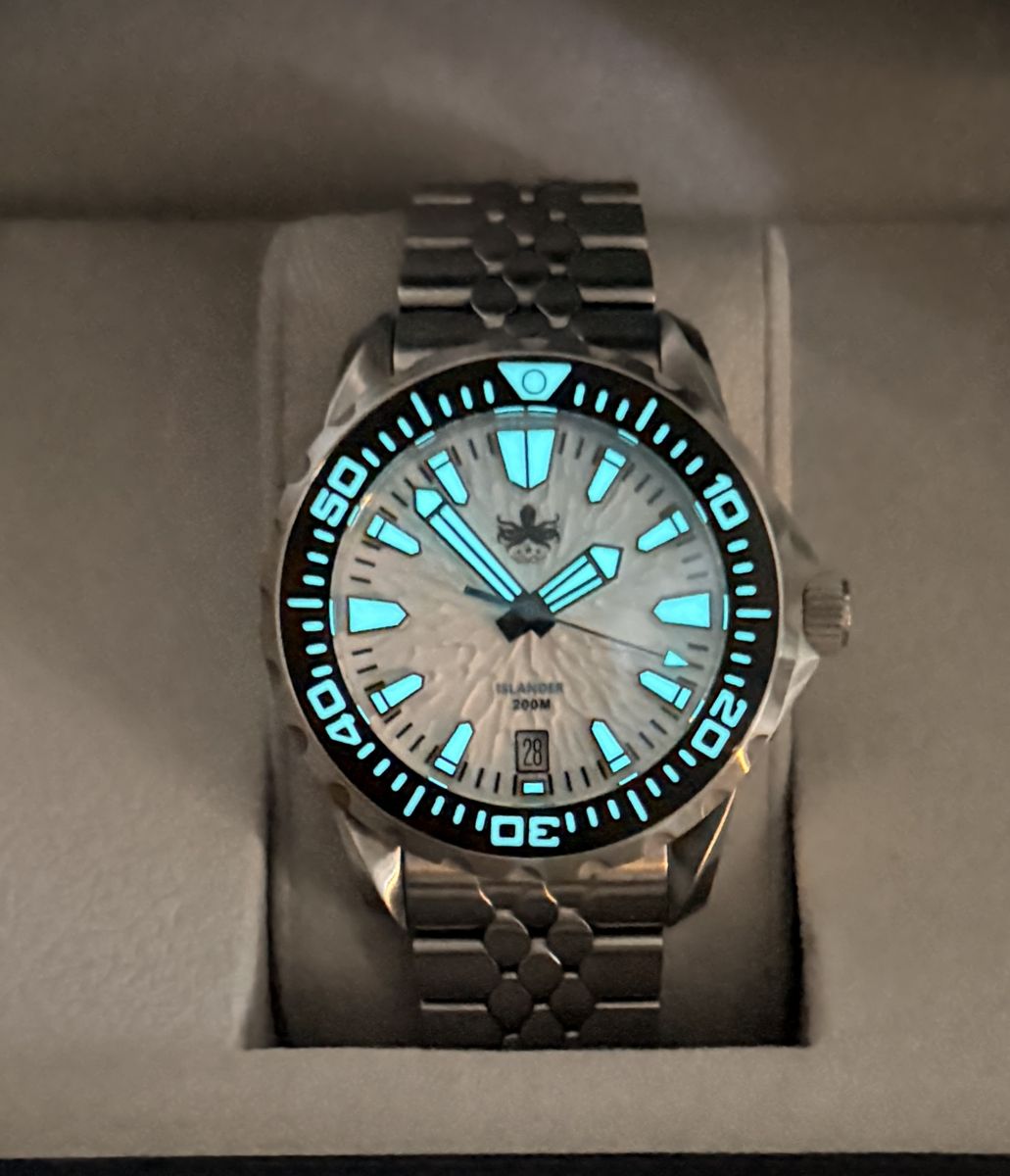 VenmoMiyota 9015 Automatic movement, sapphire crystal, textured dial. Comes with box and papers. Also includes an extra stainless steel bezel.