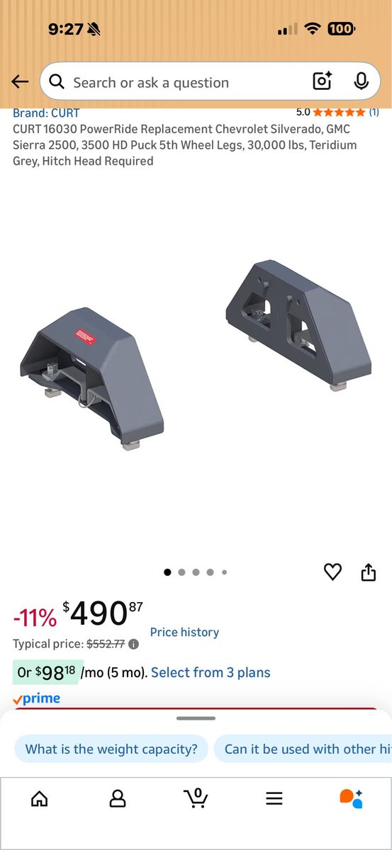 VenmoCurt powerride fifthwheel hitch adapters for gm and gmc trucks. This is just for the legs to adapt to the factory pick system and does not include the center section. 30k rated.