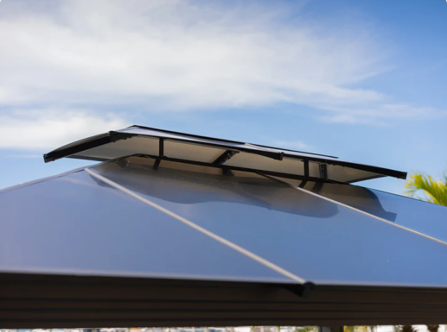 The Santa Monica's heavy-gauge aluminum frame is engineered to provide unmatched durability and stability. Powder-coated in a diamond black finish, this outdoor gazebo won’t rust, chip, peel or crack. Topped with a multi-layered aluminum composite roof, the Santa Monica not only shields you from the sun but also minimizes noise for undisturbed relaxation.