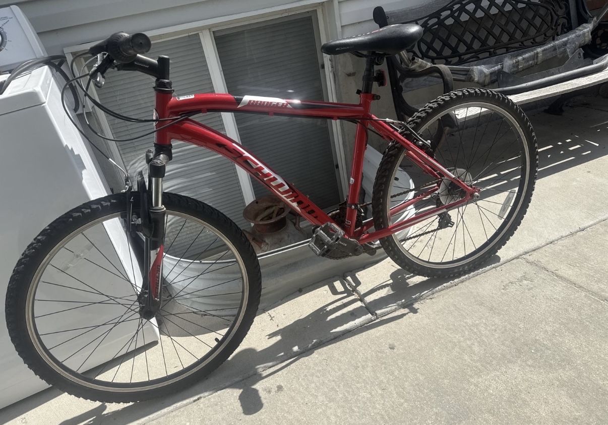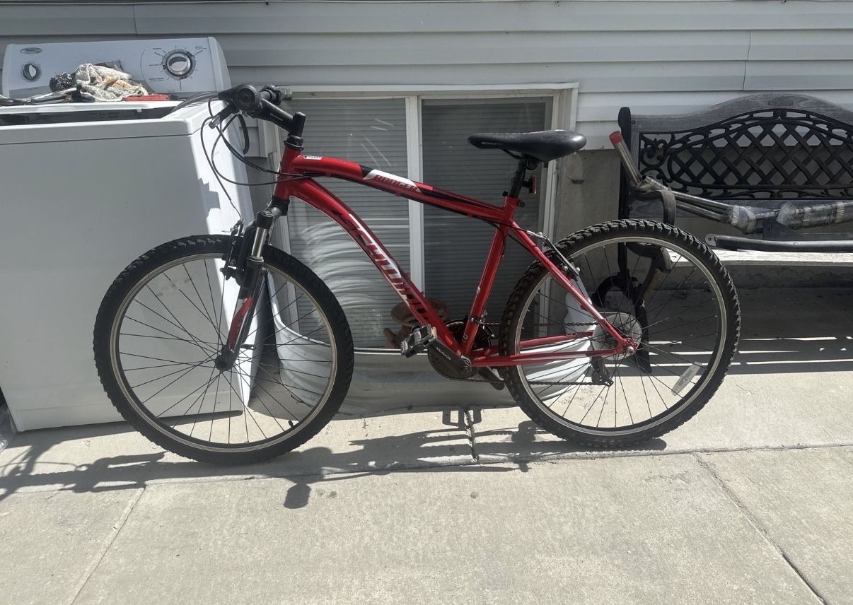 This Bike is still in good condition still in good shape. Both tires hold air , tire treads are still good. Pedals are good , seat is good, frame is still solid & has no cracks Brakes work great & shifters work great 7x3 , 21 speed , front suspension works great