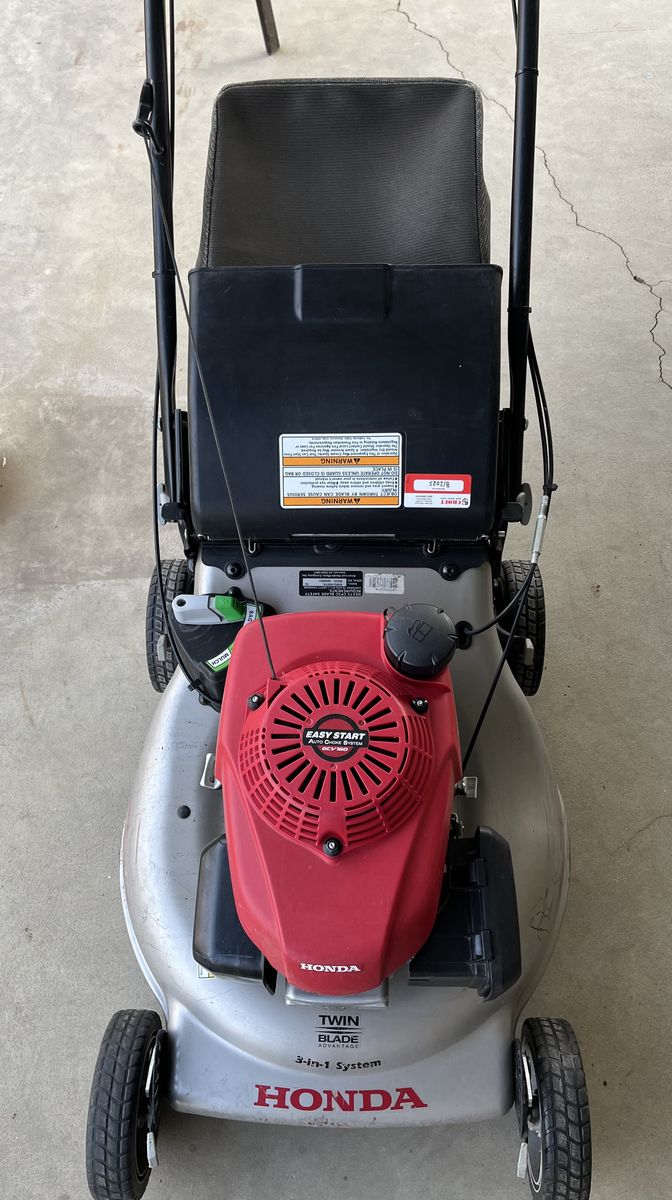 VenmoHonda HRN216VYA 21" Walk Behind Mower, Variable Speed, Blade Stop System Roto-Stop® blade stop system Self-propelled, variable speed Smart Drive 3 in 1 with Clip Director® - mulch, bag, and discharge Honda GCV170 engine with Auto Choke System 8" High Traction Wheels Honda Auto Choke™ System - easy starting Easy Fold Quick Release handle for easy height adjustment and storage Rear tires replaced Full service tune up fall 2025 including Oil change, spark plug replacement, air filter replacement, adjust cables/belts/controls