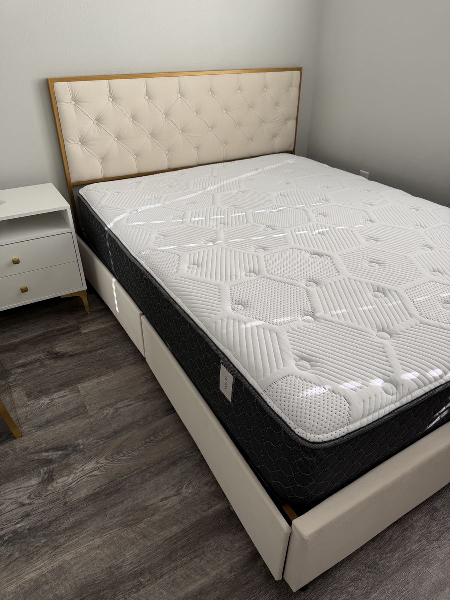 VenmoQueen size bed frame with velvet tufted headboard and four drawers. (MATTRESS NOT INCLUDED) 2 matching nightstands & dresser. Moving and need gone asap! $300 for all and must be picked up in West Jordan. Set is two years old and in new condition.