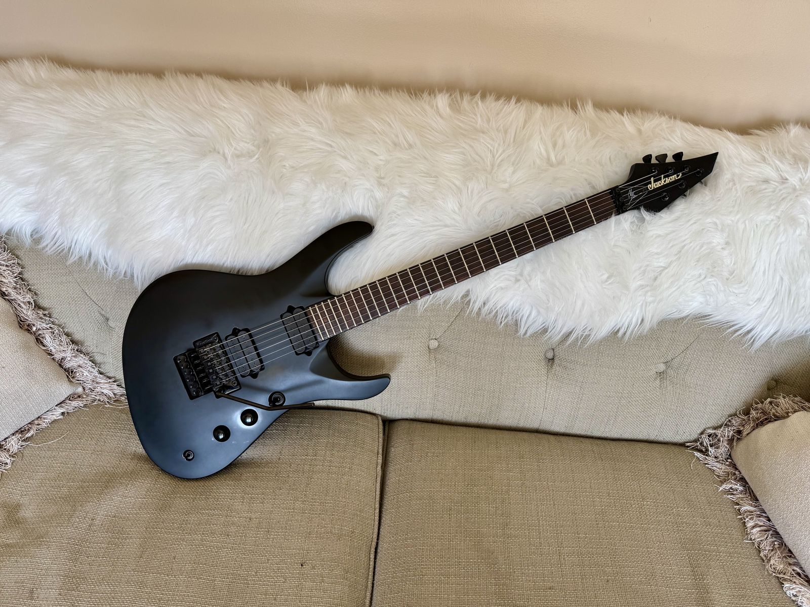 VenmoIn great shape. New set of strings tuned to drop D. Includes leather strap and Jackson hardshell case.