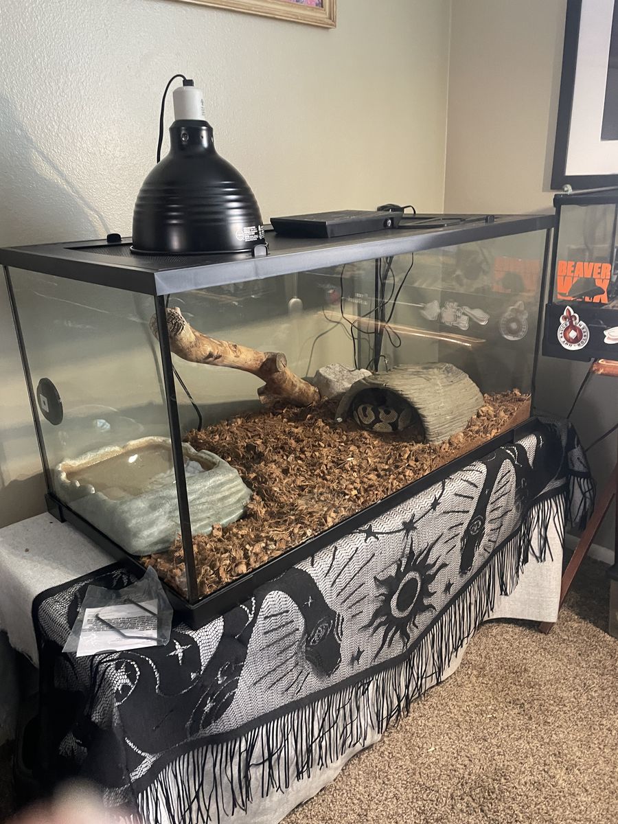 Venmo4 years old Pastel ball python she is roughly 3’ in length very friendly. We can’t give her the attention she deserves and would love for her to go with someone that can. She comes with everything she would need aquarium, heat lamp, water bowl, extra hideout, and other extra items. Asking $200