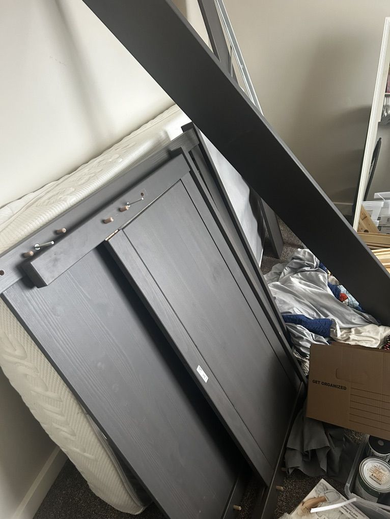 VenmoGray twin bed from Ikea. Lots of life left in it! Also includes twin purple mattress.