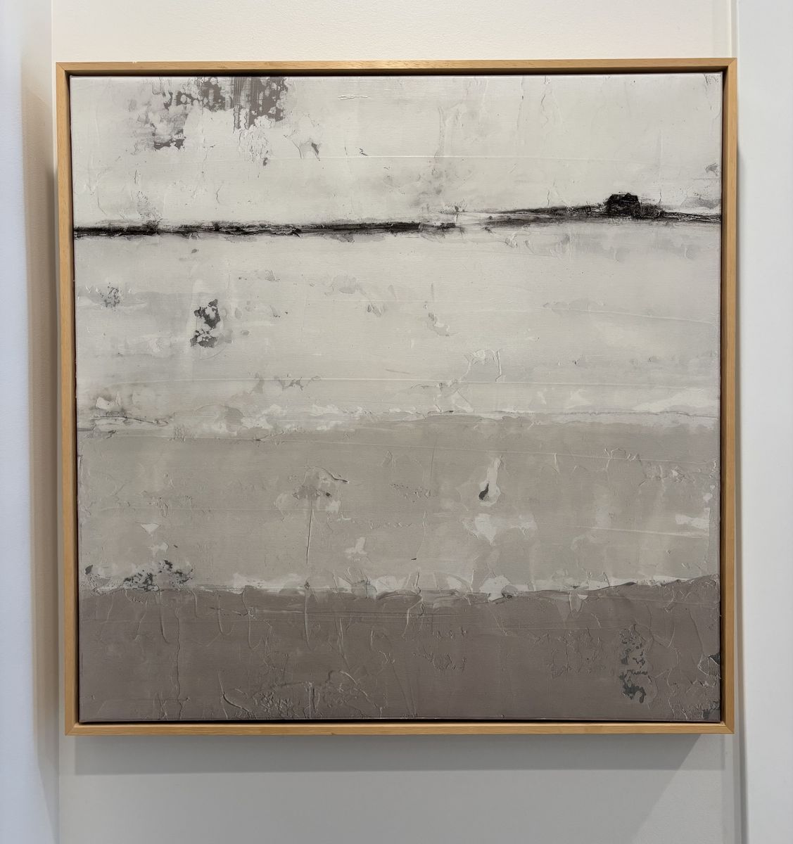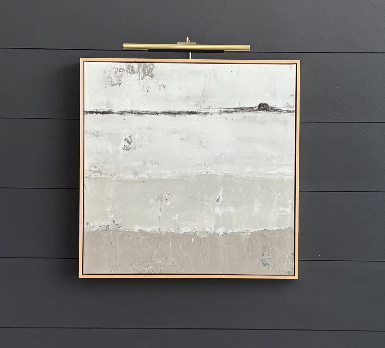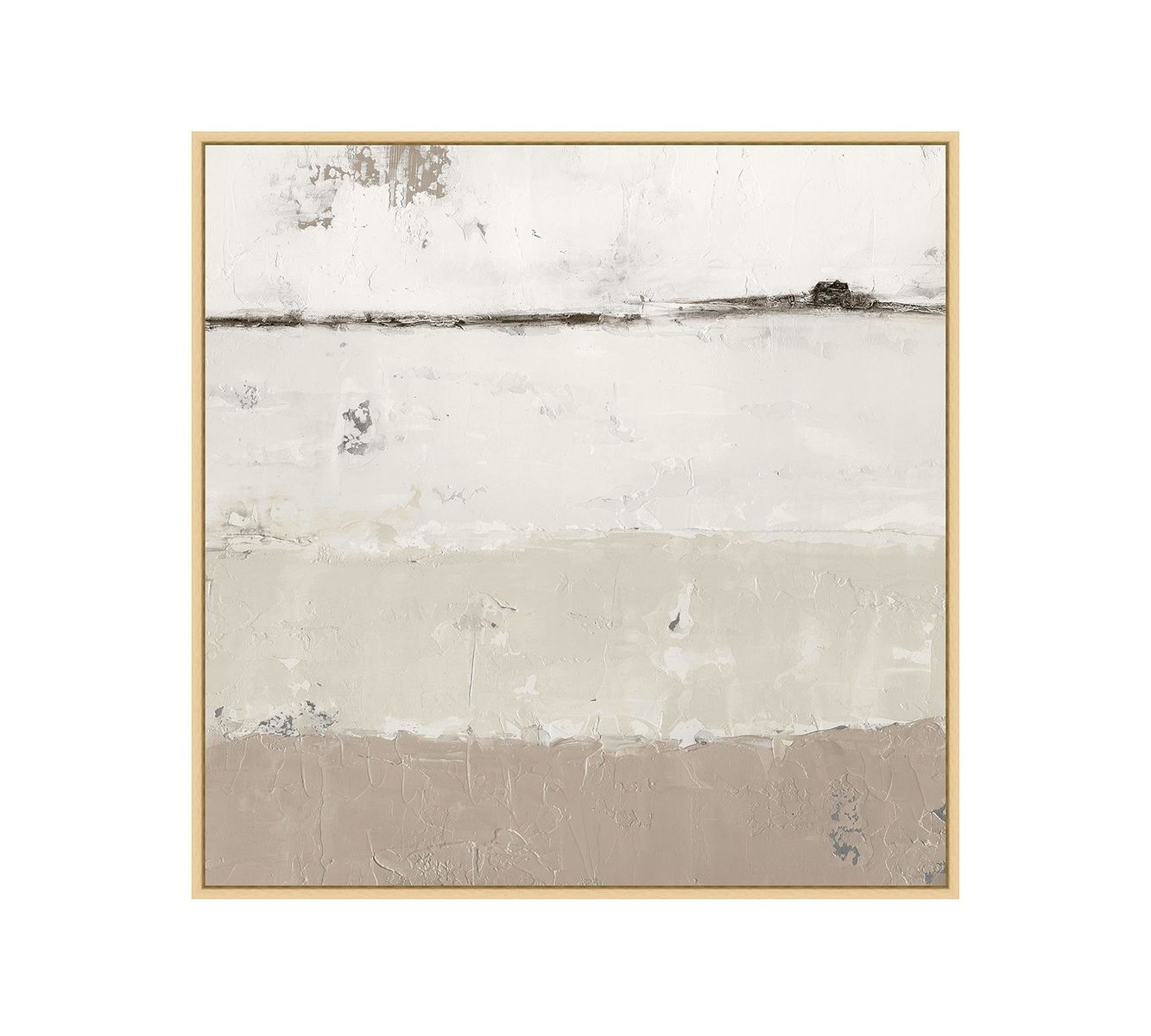 This serene abstract coastal artwork features soft neutral tones with a calming shoreline and horizon view over the sea. It's a bestseller at Pottery Barn — the perfect piece for a living room, bedroom, or beach house vibe. Gallery-wrapped giclée canvas with hand-embellished gel texture for added depth.